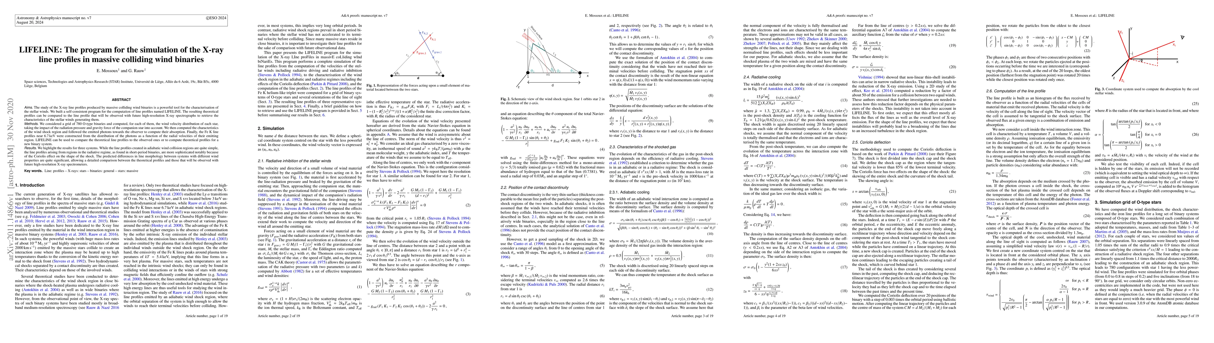 LIFELINE is a self-consistent program developed to simulate X-ray line profiles in massive colliding wind binaries, enabling detailed characterization of stellar winds. It predicts Fe K line profiles by considering wind velocity distributions, radiation pressure, and gravity forces, and can compare theoretical profiles with future high-resolution observations.