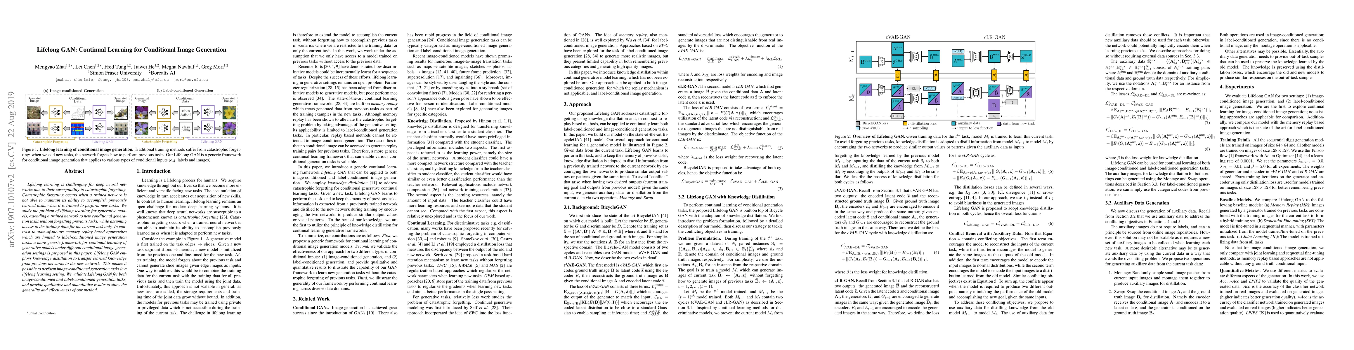 Lifelong GAN provides a more generic framework for continual learning of generative models under different conditional image generation settings.