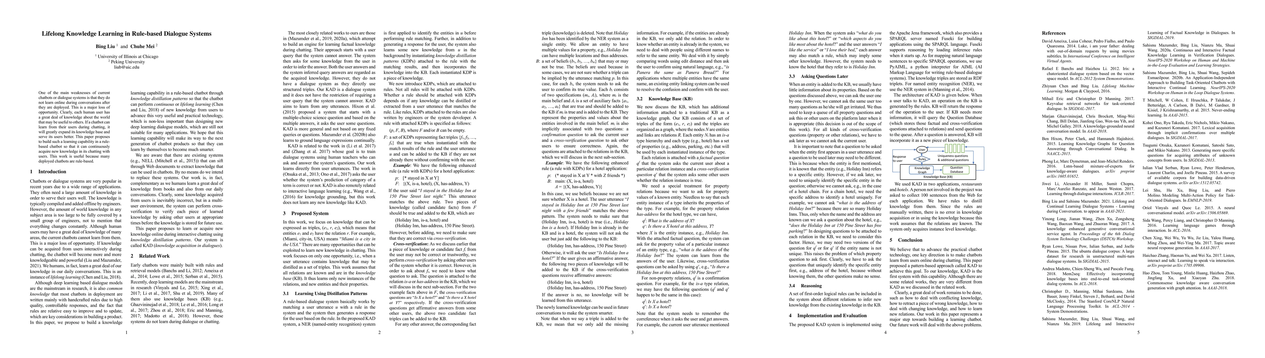 This paper proposes a rule-based chatbot that can learn from users during conversations to expand its knowledge base and serve users better. The proposed system enables lifelong learning in chatbots, addressing a major weakness of current systems.