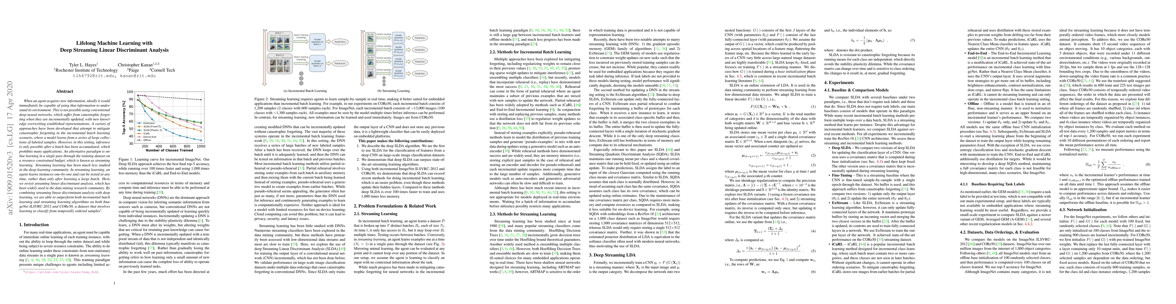 This paper proposes a method combining deep learning with streaming linear discriminant analysis to enable lifelong machine learning in a resource-constrained environment. The approach effectively mitigates catastrophic forgetting and outperforms existing incremental and streaming learning algorithms on ImageNet and CORe50 datasets.
