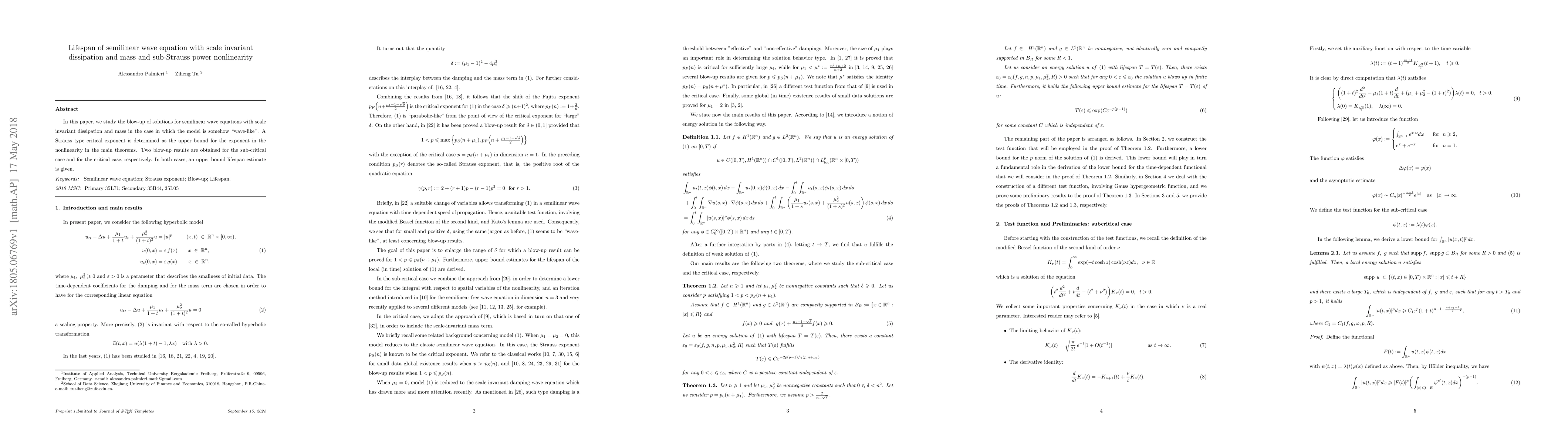 In this paper, we study the blow-up of solutions for semilinear wave equations with scale-invariant dissipation and mass in the case in which the model is somehow 'wave-like'. A Strauss type critical exponent is determined as the upper bound for the exponent in the nonlinearity in the main theorems. Two blow-up results are obtained for the sub-critical case and for the critical case, respectively. In both cases, an upper bound lifespan estimate is given.