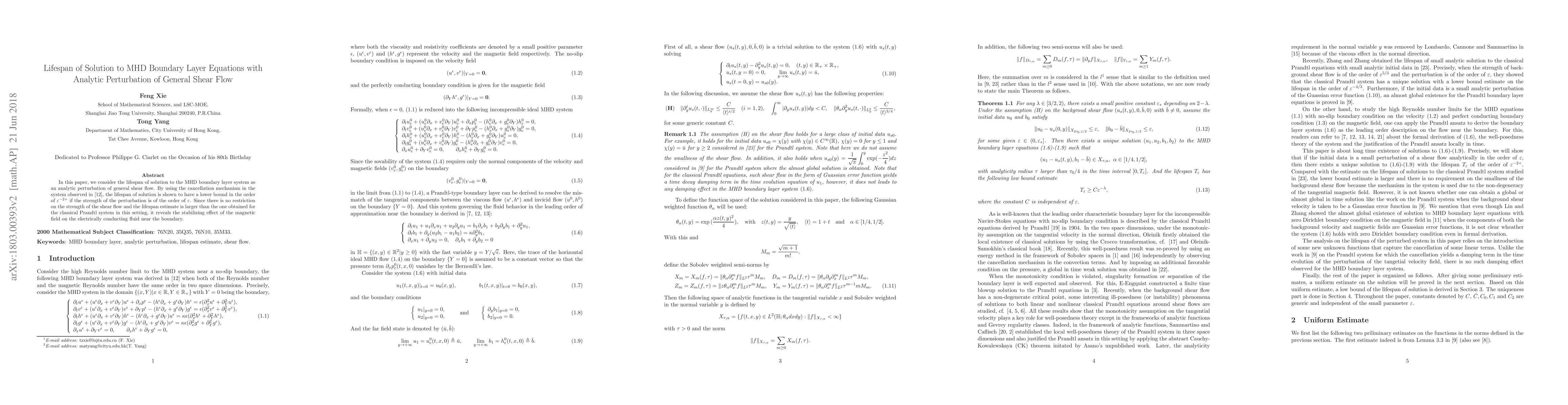In this paper, we consider the lifespan of solution to the MHD boundary layer system as an analytic perturbation of general shear flow. By using the cancellation mechanism in the system observed in \cite{LXY1}, the lifespan of solution is shown to have a lower bound in the order of $\varepsilon^{-2+}$ if the strength of the perturbation is of the order of $\varepsilon$. Since there is no restriction on the strength of the shear flow and the lifespan estimate is larger than the one obtained for the classical Prandtl system in this setting, it reveals the stabilizing effect of the magnetic field on the electrically conducting fluid near the boundary.