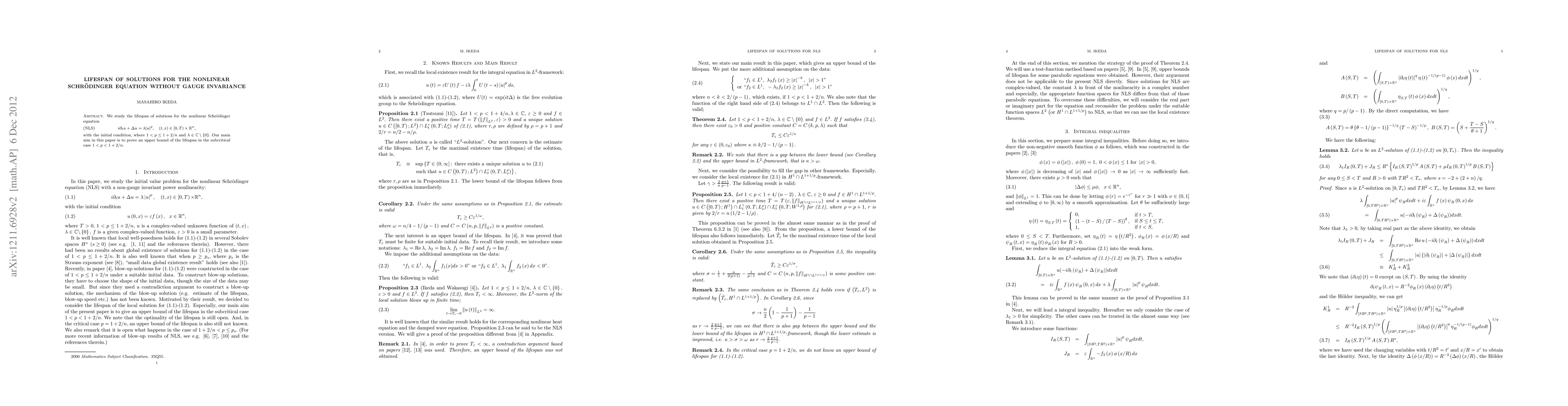 Summary: This paper investigates the lifespan of solutions for the nonlinear Schrödinger equation with a non-gauge invariant term, focusing on establishing an upper bound for the solution lifespan in the subcritical case where the exponent \( p \) satisfies \( 1 < p < 1 + \frac{2}{n} \).