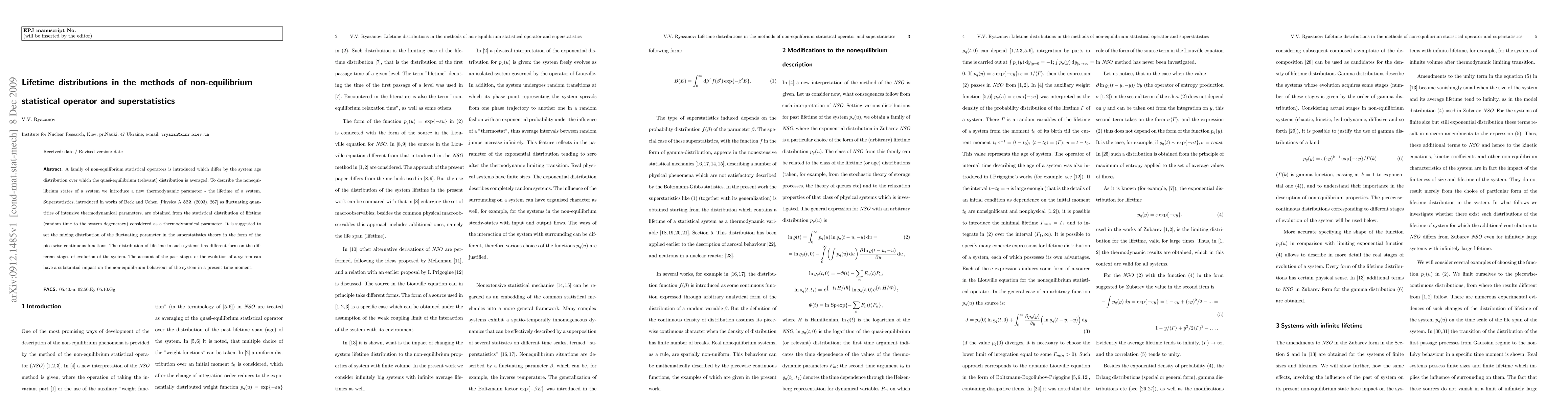 This paper introduces non-equilibrium statistical operators that average quasi-equilibrium distributions over system age, proposing a new thermodynamic parameter—system lifetime. It also explores superstatistics, where fluctuating intensive thermodynamic parameters are derived from the lifetime distribution, suggesting piecewise continuous functions for the mixing distribution.
