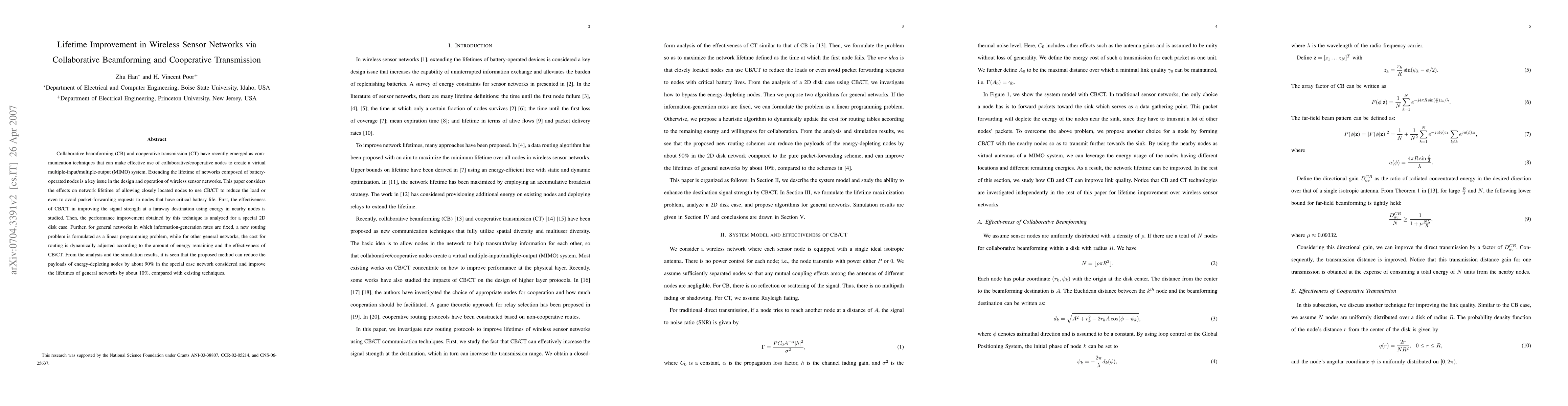 This paper explores how collaborative beamforming and cooperative transmission can extend the lifetime of wireless sensor networks by enabling nearby nodes to share load and reduce packet-forwarding requests from nodes with low battery life. The proposed techniques improve signal strength and network performance, leading to a 90% reduction in payloads for specific networks and a 10% increase in general network lifetimes compared to existing methods.