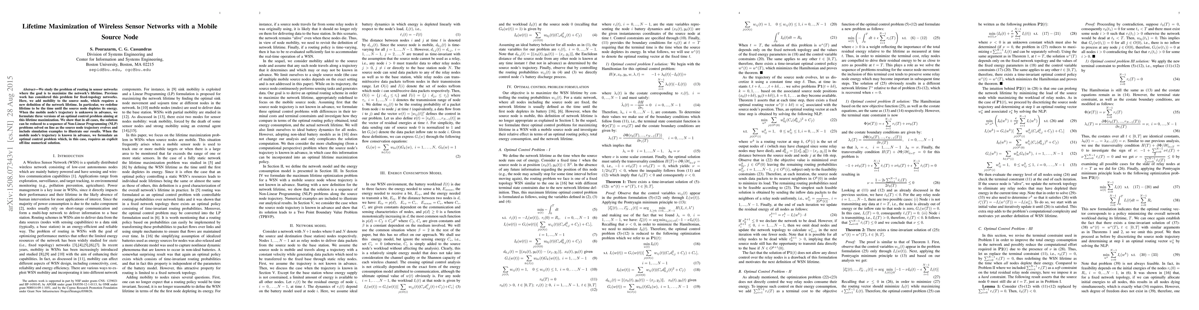 This paper addresses the challenge of maximizing the lifetime of wireless sensor networks with a mobile source node by redefining network lifetime as the time until the source node's energy depletes. It formulates optimal control problems for unknown mobile node trajectories and demonstrates that solutions can be iteratively derived through a sequence of online Non-Linear Programming (NLP) problems.