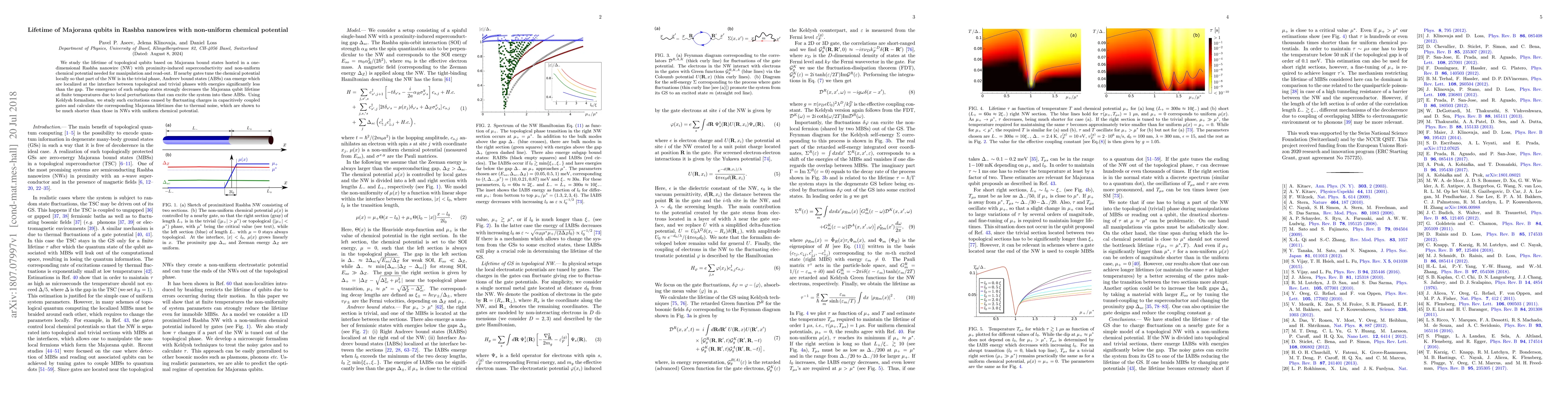 This paper investigates the impact of non-uniform chemical potential on the lifetime of Majorana qubits in Rashba nanowires with proximity-induced superconductivity. It finds that localized Andreev bound states emerging at the interface between topological and trivial phases significantly reduce qubit lifetimes due to thermal excitations, especially when gates create non-uniform potentials.