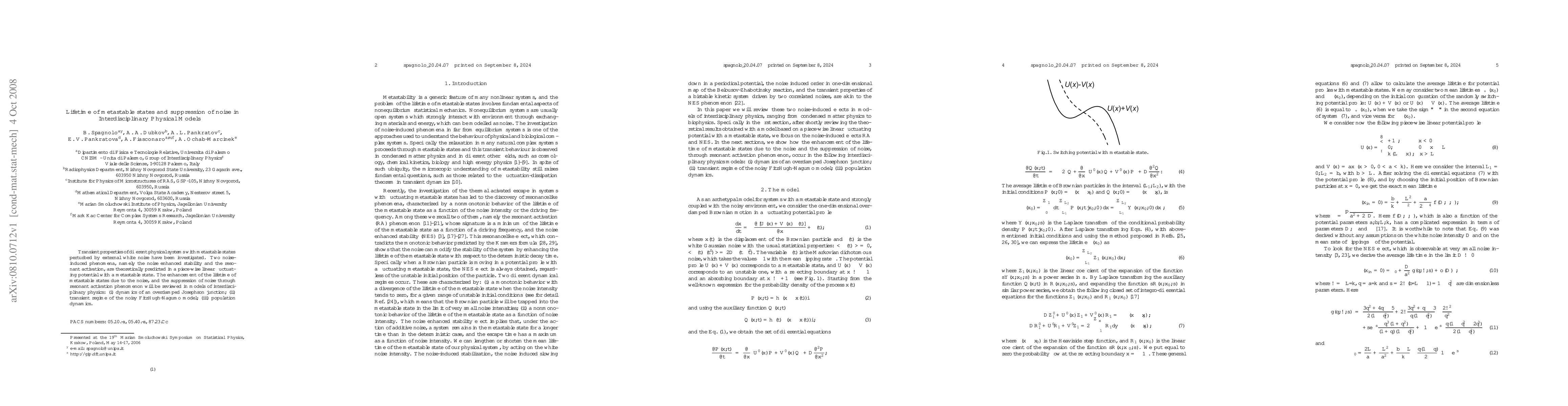 Transient properties of different physical systems with metastable states perturbed by external white noise have been investigated. Two noise-induced phenomena, namely the noise enhanced stability and the resonant activation, are theoretically predicted in a piece-wise linear fluctuating potential with a metastable state. The enhancement of the lifetime of metastable states due to the noise, and the suppression of noise through resonant activation phenomenon will be reviewed in models of interdisciplinary physics: (i) dynamics of an overdamped Josephson junction; (ii) transient regime of the noisy FitzHugh-Nagumo model; (iii) population dynamics.