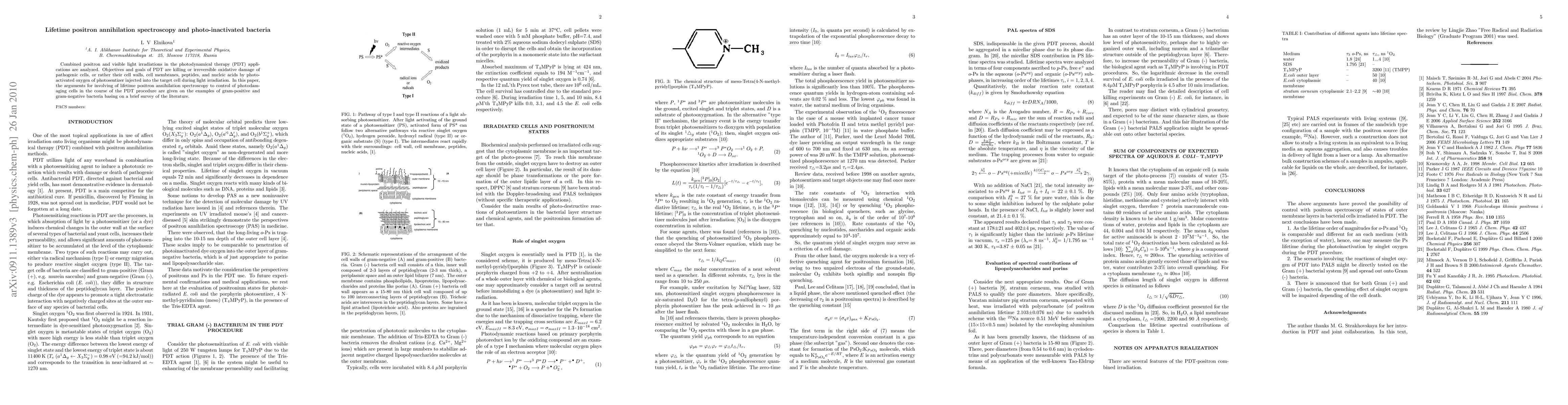 This paper explores the use of lifetime positron annihilation spectroscopy in conjunction with visible light irradiation for photodynamical therapy (PDT) to damage or kill pathogenic cells. It argues for the technique's role in monitoring the effectiveness of PDT on gram-positive and gram-negative bacteria, based on a review of relevant literature.
