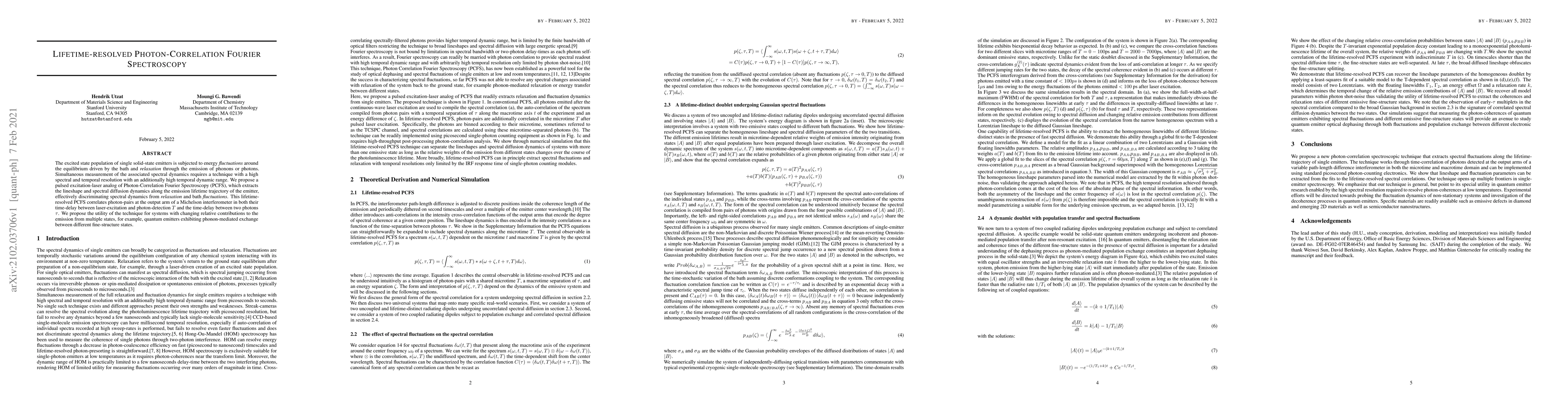 The excited state population of single solid-state emitters is subjected to energy fluctuations around the equilibrium driven by the bath and relaxation through the emission of phonons or photons. Simultaneous measurement of the associated spectral dynamics requires a technique with a high spectral and temporal resolution with an additionally high temporal dynamic range. We propose a pulsed excitation-laser analog of Photon-Correlation Fourier Spectroscopy (PCFS), which extracts the lineshape and spectral diffusion dynamics along the emission lifetime trajectory of the emitter, effectively discriminating spectral dynamics from relaxation and bath fluctuations. This lifetime-resolved PCFS correlates photon-pairs at the output arm of a Michelson interferometer in both their time-delay between laser-excitation and photon-detection and the time-delay between two photons. We propose the utility of the technique for systems with changing relative contributions to the emission from multiple states, for example, quantum emitters exhibiting phonon-mediated exchange between different fine-structure states.