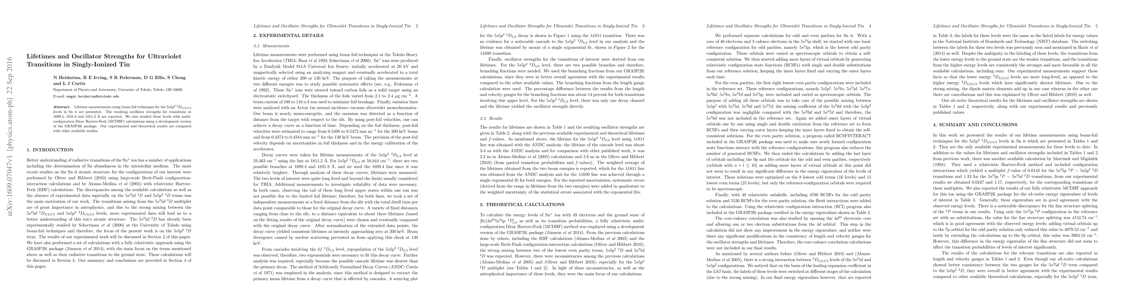 This study presents lifetime measurements and oscillator strengths for ultraviolet transitions in singly-ionized tin (Sn II) using beam foil techniques. The findings include results for transitions at 1699.4, 1831.8, and 1811.2 Å, supported by MCDHF calculations. The results are compared with previous studies.
