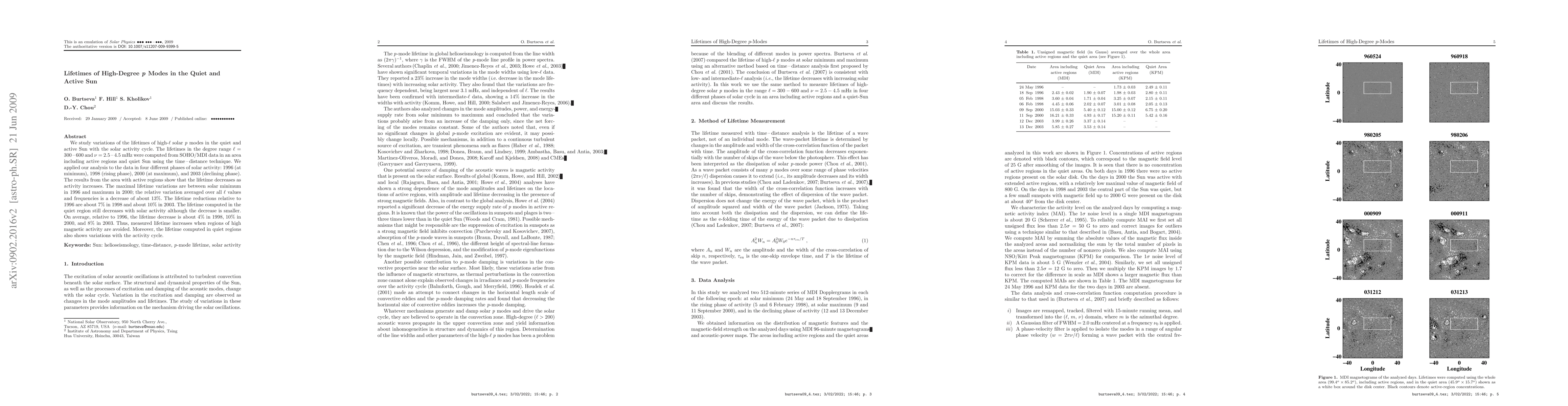 This study investigates the lifetimes of high-degree p-modes in the quiet and active Sun across different phases of the solar activity cycle, finding that lifetimes decrease with increasing solar activity, with more pronounced reductions in active regions. The relative lifetime variations are about 13% from solar minimum to maximum.