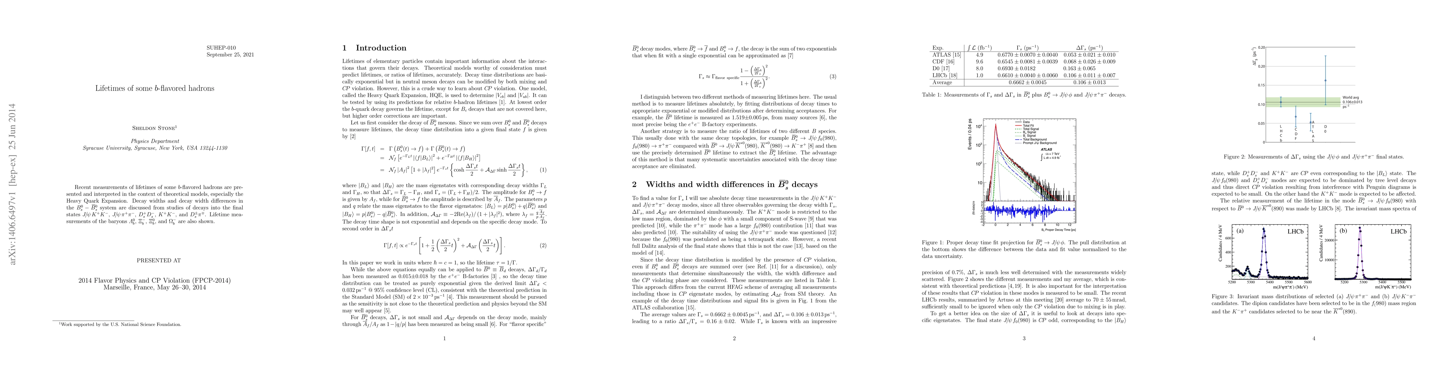This paper reports recent measurements of the lifetimes of several $b$-flavored hadrons, including $B_s^0$ mesons and $\Lambda_b^0$, $\Xi_b$, and $\Omega_b$ baryons, and interprets these findings within the framework of the Heavy Quark Expansion theory.