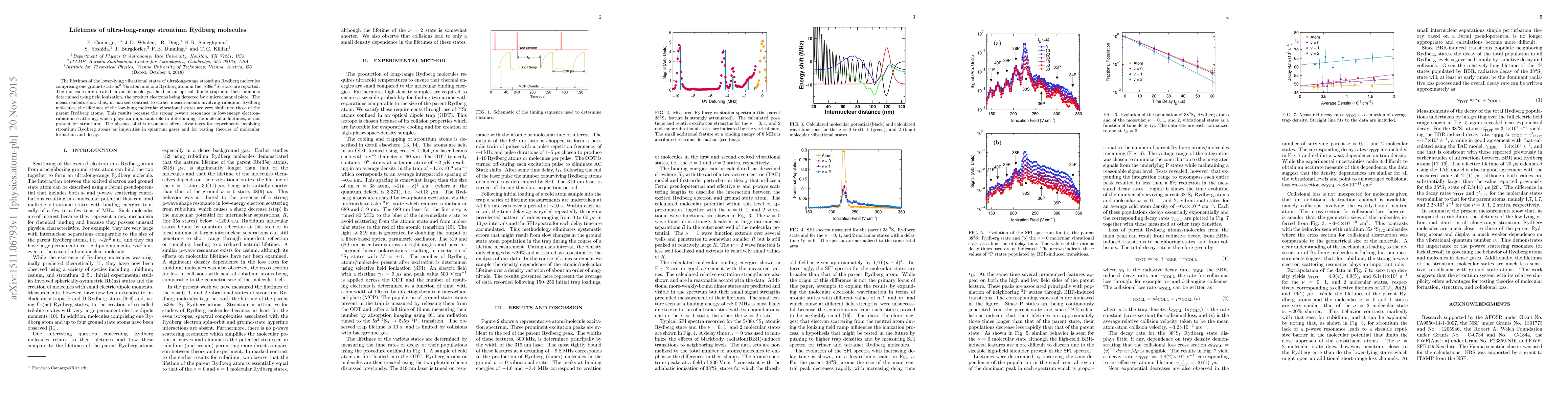 The lifetimes of the lower-lying vibrational states of ultralong-range strontium Rydberg molecules comprising one ground-state 5s2 1S0 atom and one Rydberg atom in the 5s38s 3S1 state are reported. The molecules are created in an ultracold gas held in an optical dipole trap and their numbers determined using field ionization, the product electrons being detected by a microchannel plate. The measurements show that, in marked contrast to earlier measurements involving rubidium Rydberg molecules, the lifetimes of the low-lying molecular vibrational states are very similar to those of the parent Rydberg atoms. This results because the strong p-wave resonance in low-energy electronrubidium scattering, which plays an important role in determining the molecular lifetimes, is not present for strontium. The absence of this resonance offers advantages for experiments involving strontium Rydberg atoms as impurities in quantum gases and for testing theories of molecular formation and decay.