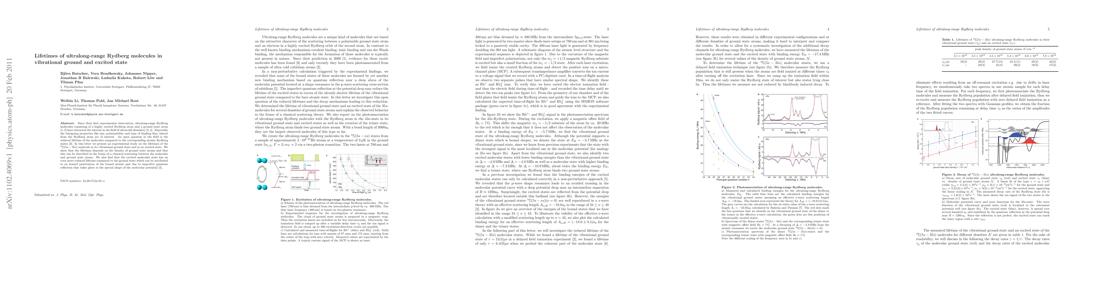This paper investigates the lifetimes of ultralong-range Rydberg molecules in both their vibrational ground state and an excited state, revealing that lifetimes depend on the density of ground state atoms and are reduced in excited states due to quantum reflection effects within the molecular potential.