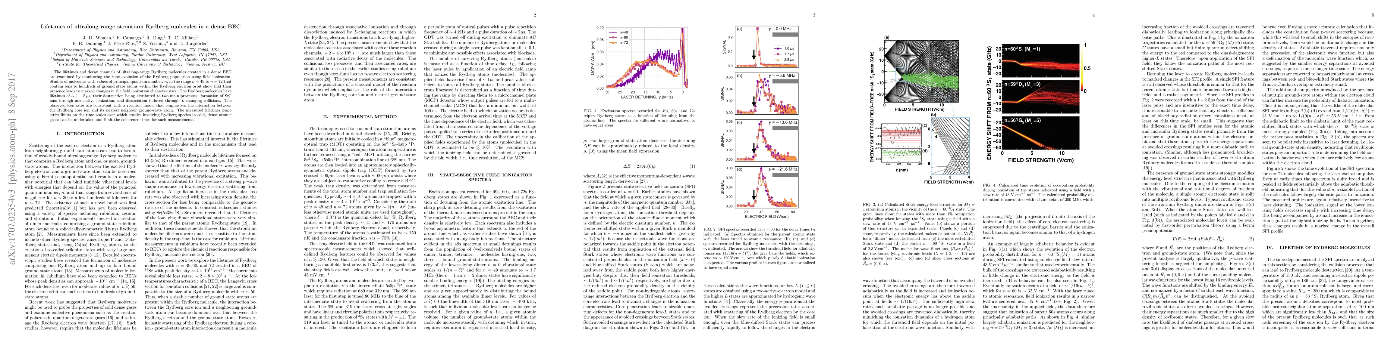 The lifetimes and decay channels of ultralong-range Rydberg molecules created in a dense BEC are examined by monitoring the time evolution of the Rydberg population using field ionization. Studies of molecules with values of principal quantum number, $n$, in the range $n=49$ to $n=72$ that contain tens to hundreds of ground state atoms within the Rydberg electron orbit show that their presence leads to marked changes in the field ionization characteristics. The Rydberg molecules have lifetimes of $\sim1-5\,\mu$s, their destruction being attributed to two main processes: formation of Sr$^+_2$ ions through associative ionization, and dissociation induced through $L$-changing collisions. The observed loss rates are consistent with a reaction model that emphasizes the interaction between the Rydberg core ion and its nearest neighbor ground-state atom. The measured lifetimes place strict limits on the time scales over which studies involving Rydberg species in cold, dense atomic gases can be undertaken and limit the coherence times for such measurements.