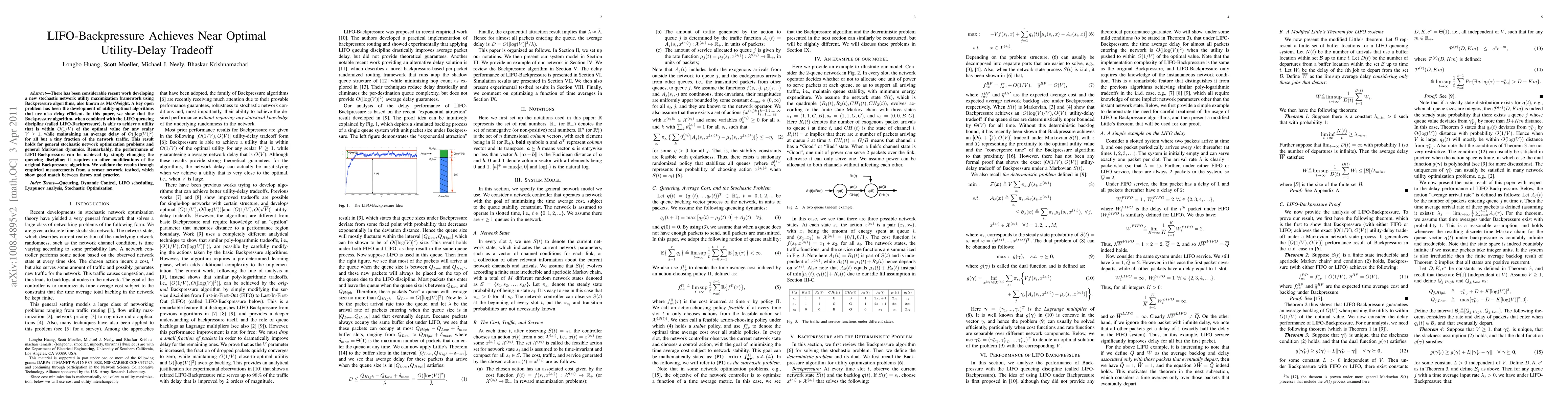 This paper demonstrates that combining the LIFO queueing discipline with Backpressure algorithms (LIFO-Backpressure) achieves near-optimal utility while maintaining efficient delay for stochastic network optimization, requiring no modifications beyond the queueing discipline. Empirical validation from a sensor network testbed confirms theoretical results.
