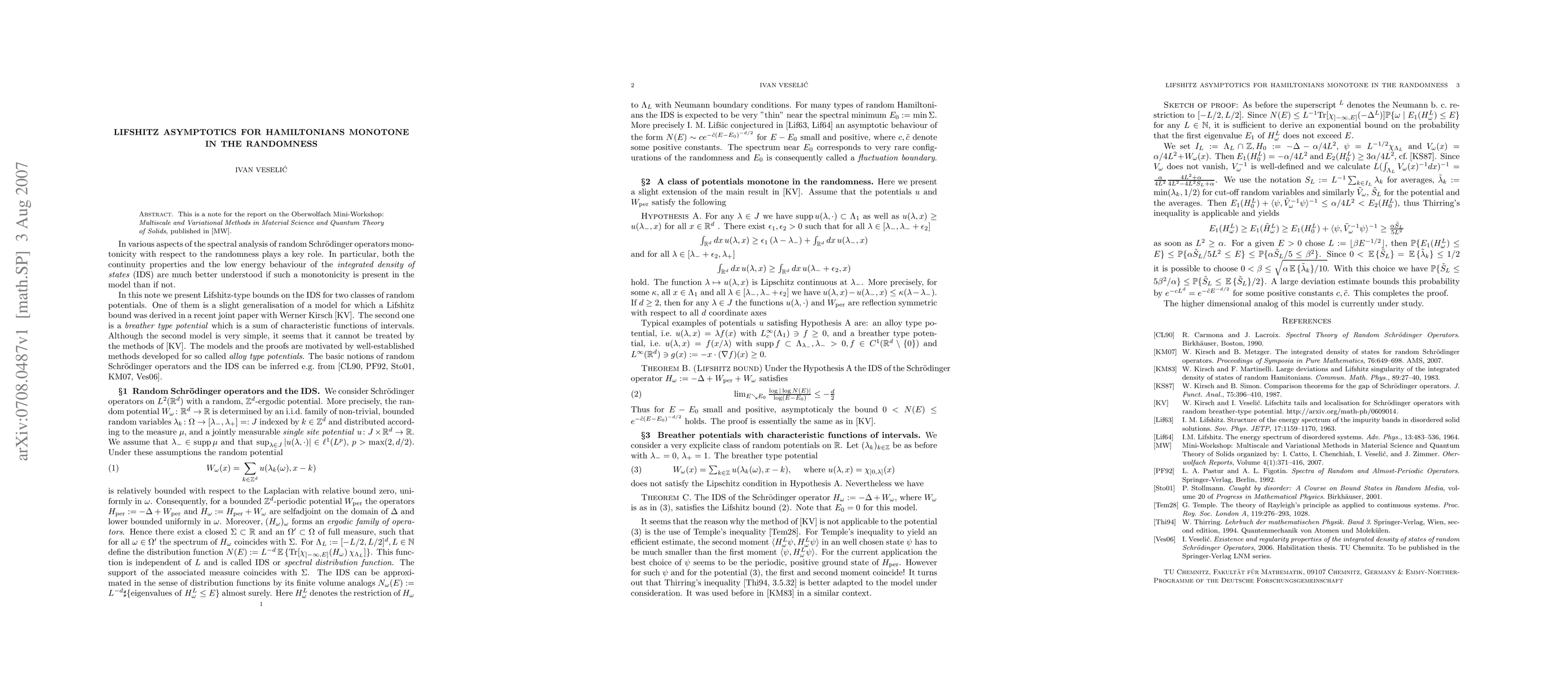 In various aspects of the spectral analysis of random Schroedinger operators monotonicity with respect to the randomness plays a key role. In particular, both the continuity properties and the low energy behaviour of the integrated density of states (IDS) are much better understood if such a monotonicity is present in the model than if not. In this note we present Lifshitz-type bounds on the IDS for two classes of random potentials. One of them is a slight generalisation of a model for which a Lifshitz bound was derived in a recent joint paper with Werner Kirsch [KV]. The second one is a breather type potential which is a sum of characteristic functions of intervals. Although the second model is very simple, it seems that it cannot be treated by the methods of [KV]. The models and the proofs are motivated by well-established methods developed for so called alloy type potentials.