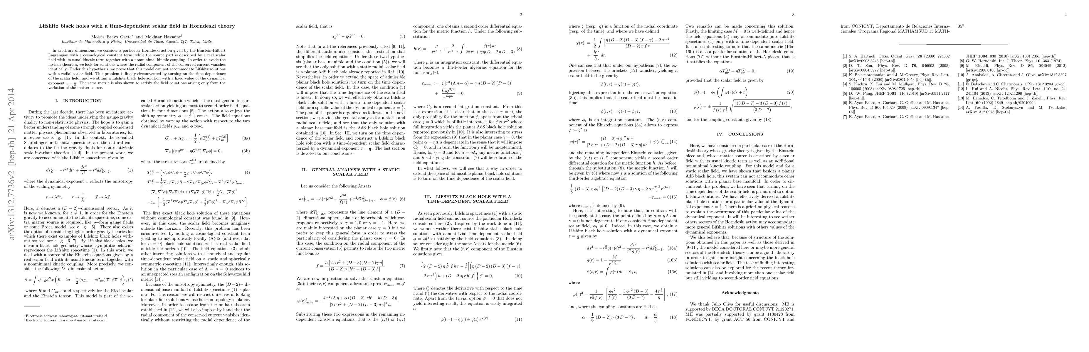 This research presents a study on Lifshitz black holes in Horndeski theory, where a time-dependent scalar field is introduced to evade no-hair theorem restrictions. The model, analyzed in arbitrary dimensions, initially fails to accommodate Lifshitz solutions with a radial scalar field. This issue is resolved by incorporating a time-dependent scalar field, yielding a Lifshitz black hole solution with a dynamical exponent z=1/3. The metric also satisfies field equations derived solely from the matter source variation.