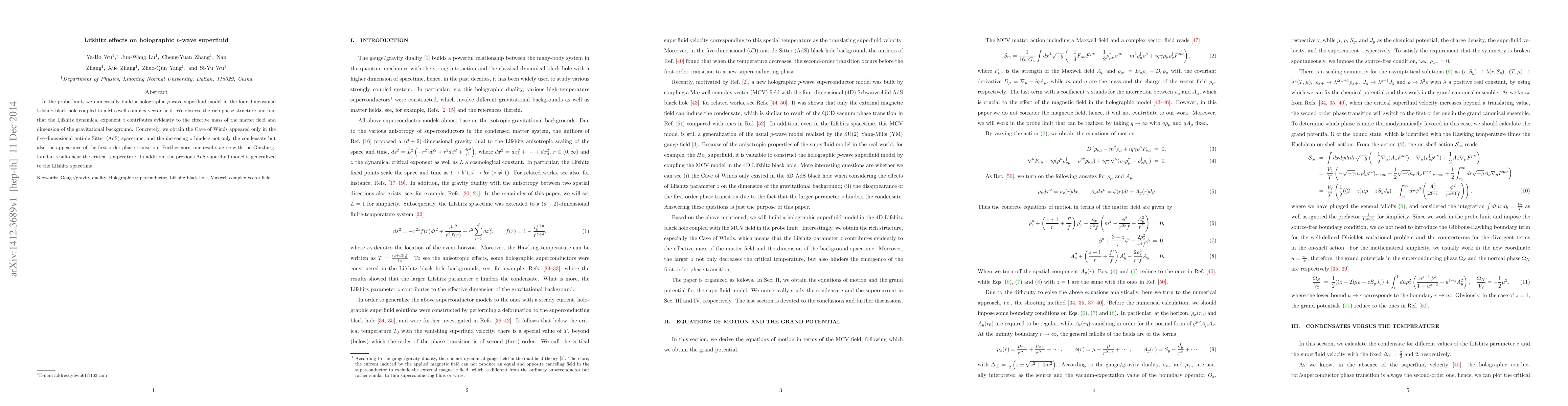 This paper numerically constructs a holographic $p$-wave superfluid model in a four-dimensional Lifshitz black hole, revealing that the Lifshitz dynamical exponent $z$ influences the effective mass and dimension of the gravitational background. The study finds that increasing $z$ suppresses both the condensate and first-order phase transitions, aligning with Ginzburg-Landau predictions near critical temperature.
