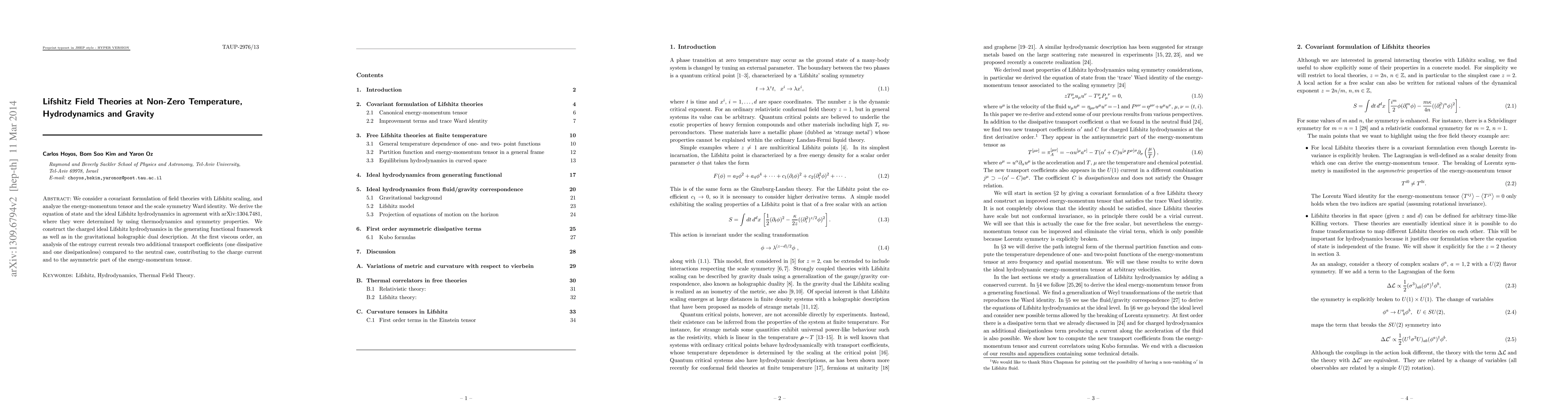 We consider a covariant formulation of field theories with Lifshitz scaling, and analyze the energy-momentum tensor and the scale symmetry Ward identity. We derive the equation of state and the ideal Lifshitz hydrodynamics in agreement with arXiv:1304.7481, where they were determined by using thermodynamics and symmetry properties. We construct the charged ideal Lifshitz hydrodynamics in the generating functional framework as well as in the gravitational holographic dual description. At the first viscous order, an analysis of the entropy current reveals two additional transport coefficients (one dissipative and one dissipationless) compared to the neutral case, contributing to the charge current and to the asymmetric part of the energy-momentum tensor.