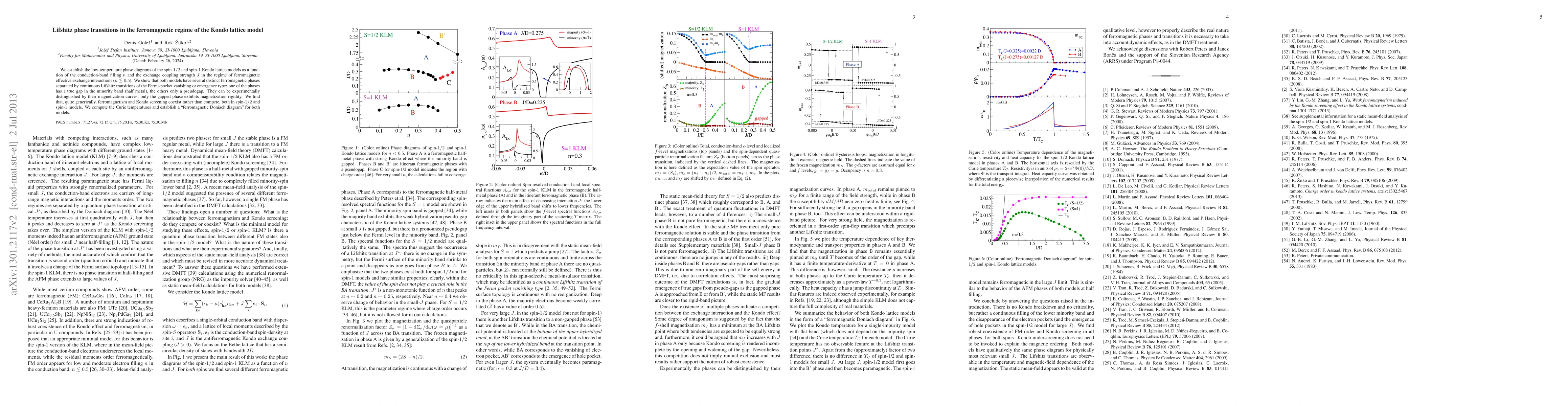 We establish the low-temperature phase diagrams of the spin-1/2 and spin-1 Kondo lattice models as a function of the conduction-band filling n and the exchange coupling strength J in the regime of ferromagnetic effective exchange interactions (n ~< 0.5). We show that both models have several distinct ferromagnetic phases separated by continuous Lifshitz transitions of the Fermi-pocket vanishing or emergence type: one of the phases has a true gap in the minority band (half metal), the others only a pseudogap. They can be experimentally distinguished by their magnetization curves; only the gapped phase exhibits magnetization rigidity. We find that, quite generically, ferromagnetism and Kondo screening coexist rather than compete, both in spin-1/2 and spin-1 models. We compute the Curie temperatures and establish a "ferromagnetic Doniach diagram" for both models.