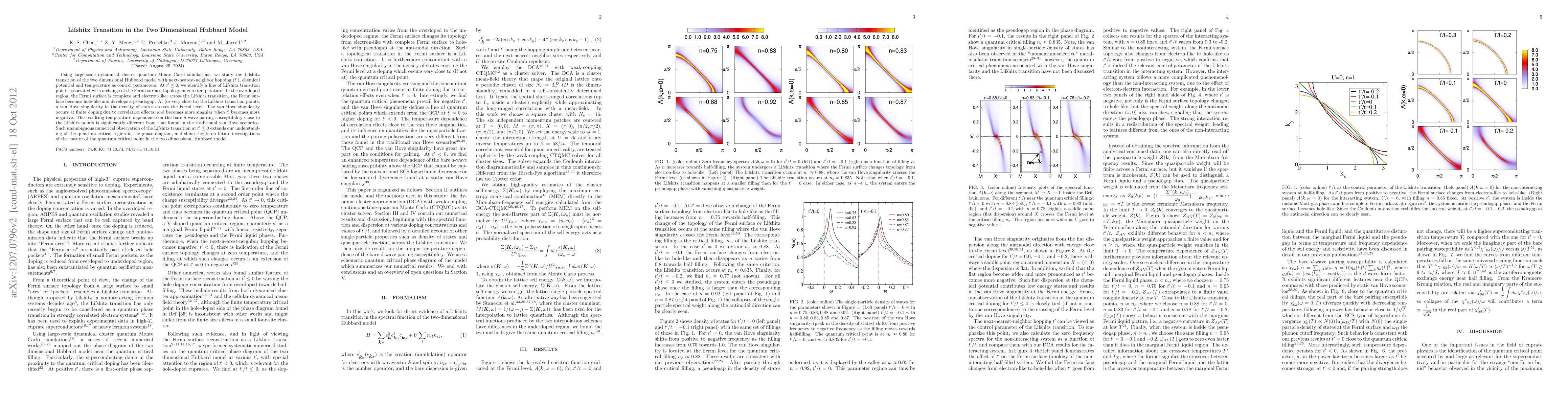 This study uses quantum Monte Carlo simulations to investigate the Lifshitz transition in the 2D Hubbard model, revealing a change in Fermi surface topology and the emergence of a pseudogap at negative next-nearest-neighbor hopping. The transition is marked by a van Hove singularity influencing the temperature dependence of d-wave pairing susceptibility.