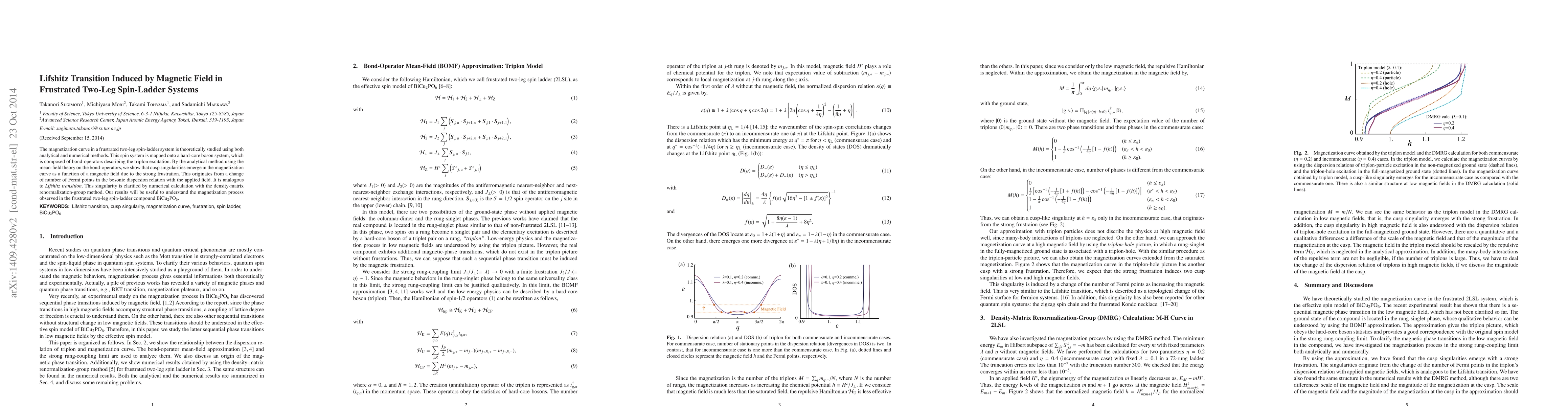 This paper investigates the magnetization curve in frustrated two-leg spin-ladder systems, revealing cusp singularities due to a Lifshitz transition induced by a magnetic field. Analytical and numerical methods show that strong frustration causes changes in the number of Fermi points, leading to these singularities.