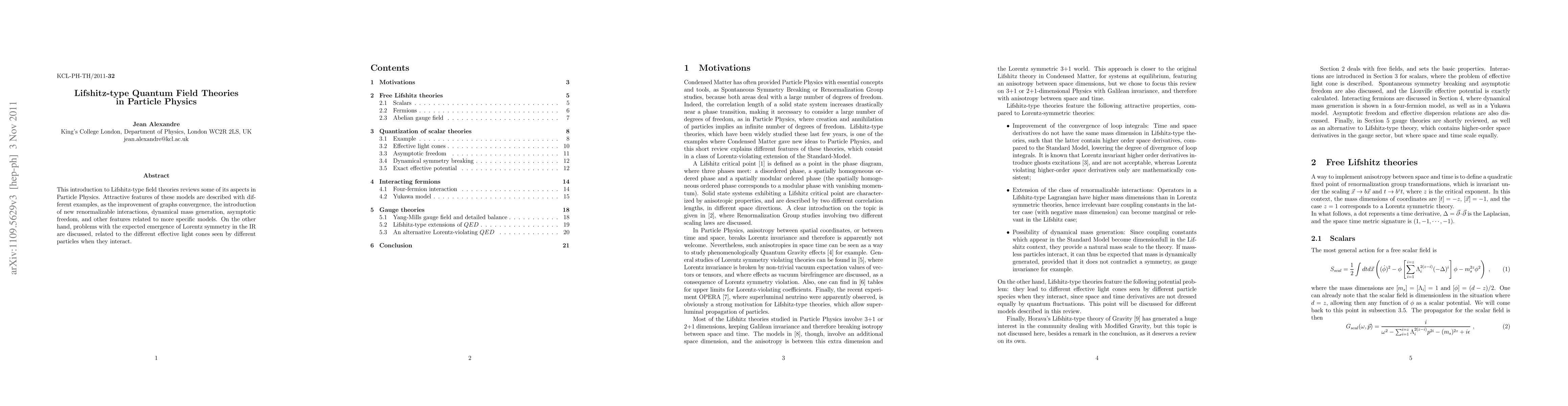 The paper provides an introduction and review of Lifshitz-type quantum field theories in particle physics, discussing their attractive features and problems, particularly focusing on the emergence of Lorentz symmetry in the infrared (IR) regime.