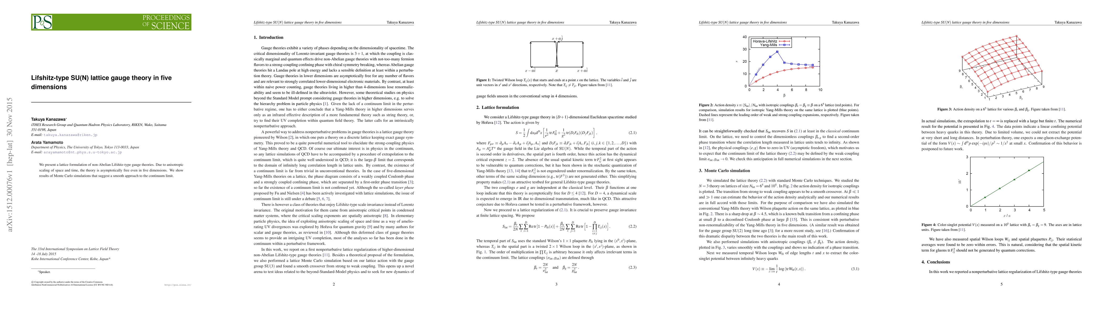 We present a lattice formulation of non-Abelian Lifshitz-type gauge theories. Due to anisotropic scaling of space and time, the theory is asymptotically free even in five dimensions. We show results of Monte Carlo simulations that suggest a smooth approach to the continuum limit.