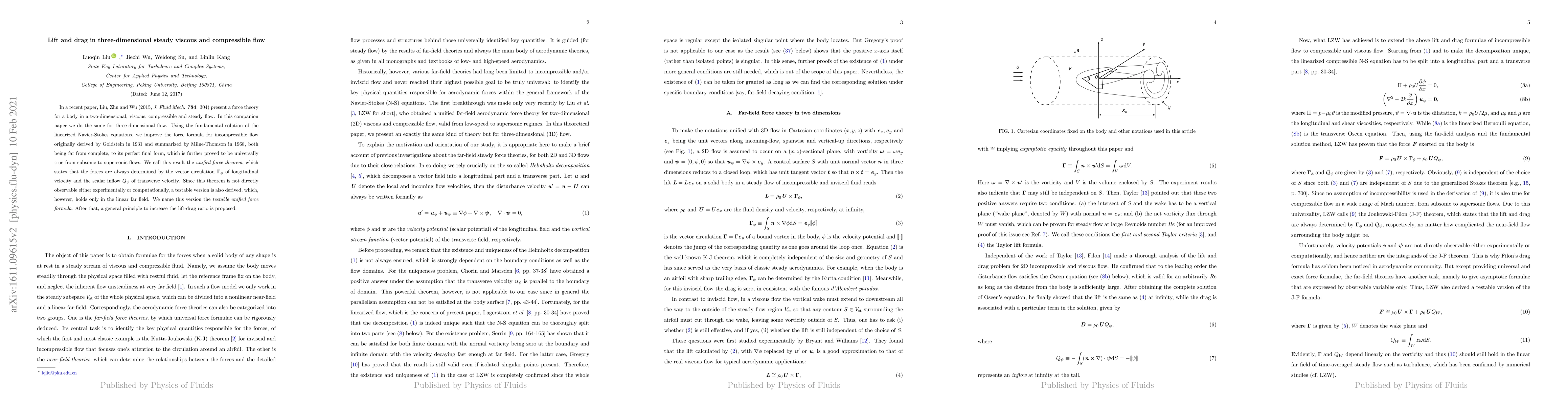 This paper extends the force theory for a body in three-dimensional, viscous, compressible, and steady flow, improving upon the incomplete force formulas of Goldstein and Milne-Thomson. The authors introduce the unified force theorem, asserting that forces are determined by vector circulation and scalar inflow, and propose a testable version for the linear far field.