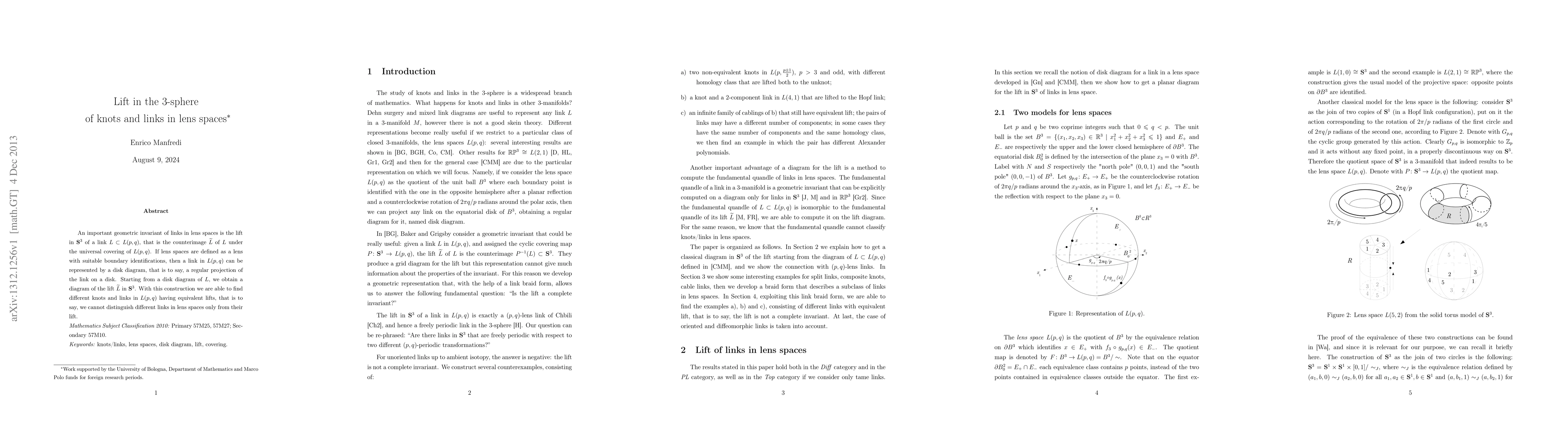 This research investigates geometric invariants of links in lens spaces, specifically focusing on their lifts in the 3-sphere. It demonstrates that different links in lens spaces can have equivalent lifts, implying that these lifts cannot always distinguish between different links within lens spaces.