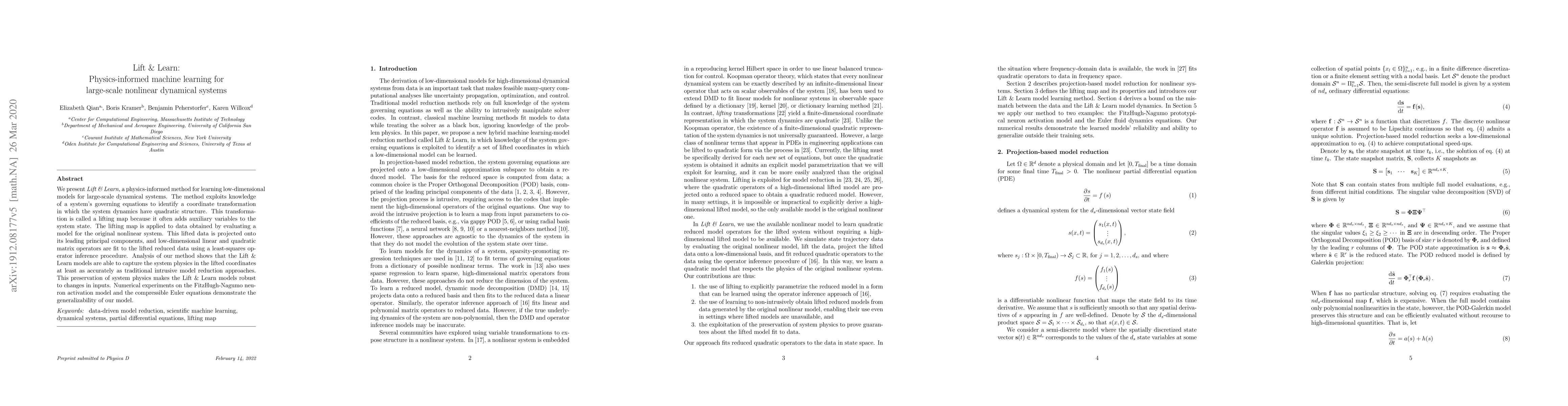 Lift & Learn is a method that uses physics knowledge to learn low-dimensional models of complex systems, preserving their underlying physics and making them robust to changes in inputs.