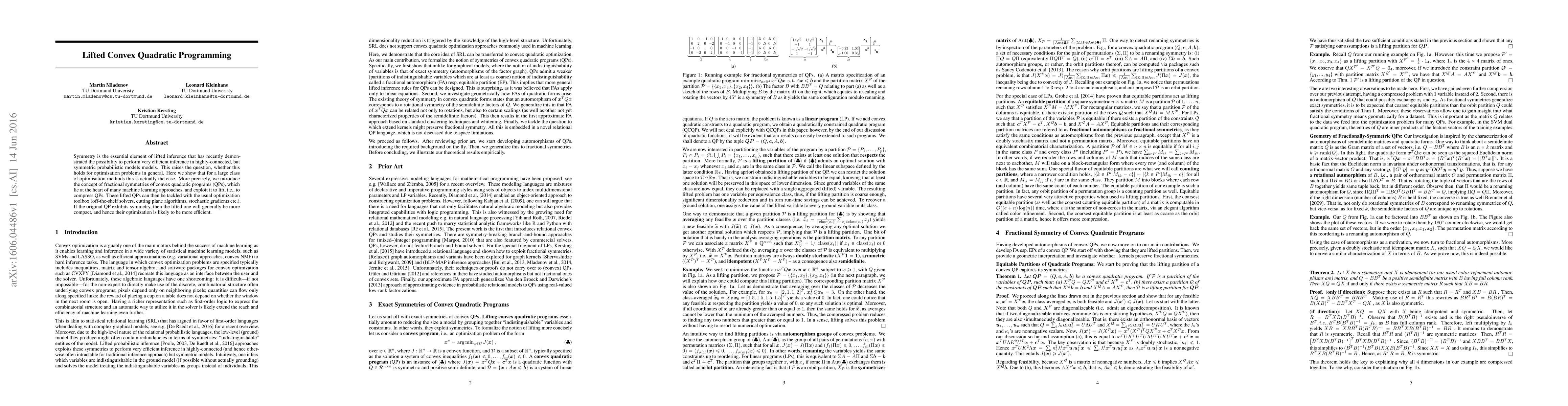 Researchers show that symmetry in probabilistic models can lead to more efficient optimization of convex quadratic programs (QPs) through a technique called lifted QP, which compresses the original problem into a more compact version.