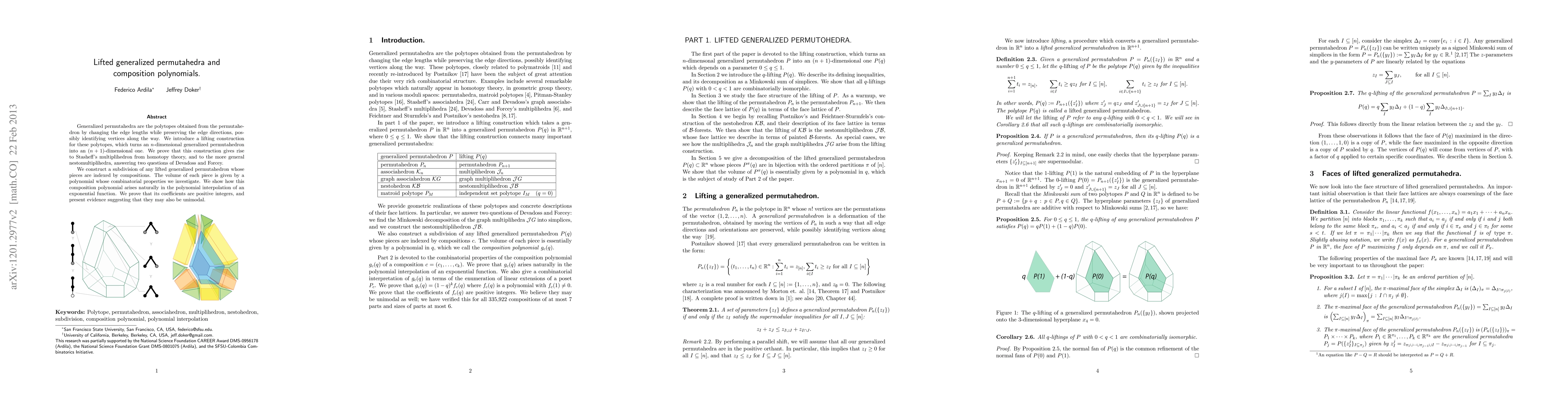 Generalized permutahedra are the polytopes obtained from the permutahedron by changing the edge lengths while preserving the edge directions, possibly identifying vertices along the way. We introduce a "lifting" construction for these polytopes, which turns an $n$-dimensional generalized permutahedron into an $(n+1)$-dimensional one. We prove that this construction gives rise to Stasheff's multiplihedron from homotopy theory, and to the more general "nestomultiplihedra," answering two questions of Devadoss and Forcey. We construct a subdivision of any lifted generalized permutahedron whose pieces are indexed by compositions. The volume of each piece is given by a polynomial whose combinatorial properties we investigate. We show how this "composition polynomial" arises naturally in the polynomial interpolation of an exponential function. We prove that its coefficients are positive integers, and present evidence suggesting that they may also be unimodal.