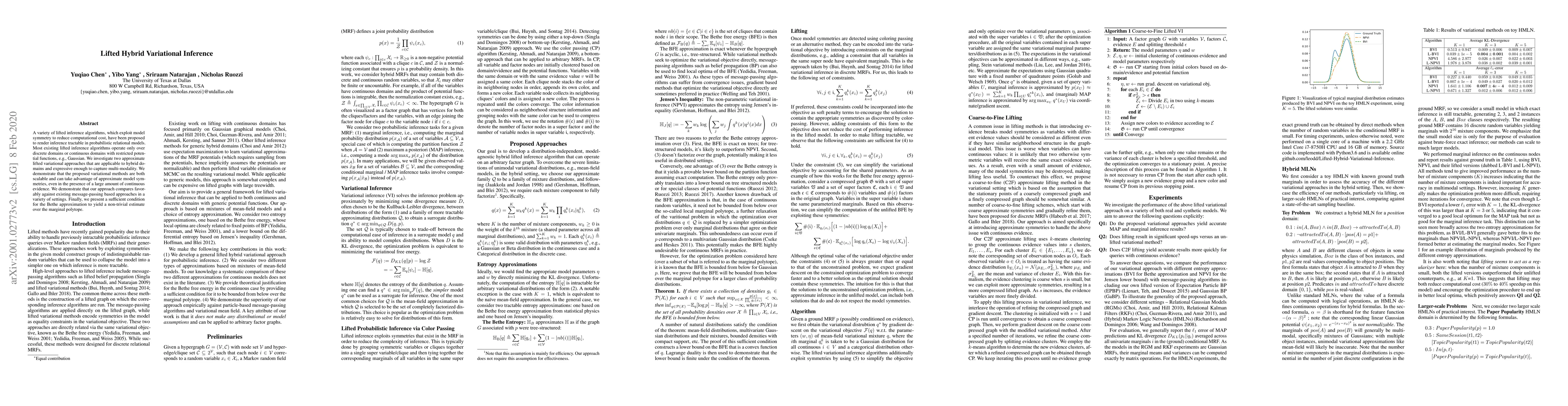 This paper proposes two scalable variational inference methods for lifted inference in probabilistic relational models with hybrid domains, demonstrating their effectiveness in capturing multi-modality and leveraging model symmetries. The methods outperform existing message-passing approaches and provide a sufficient condition for the Bethe approximation.
