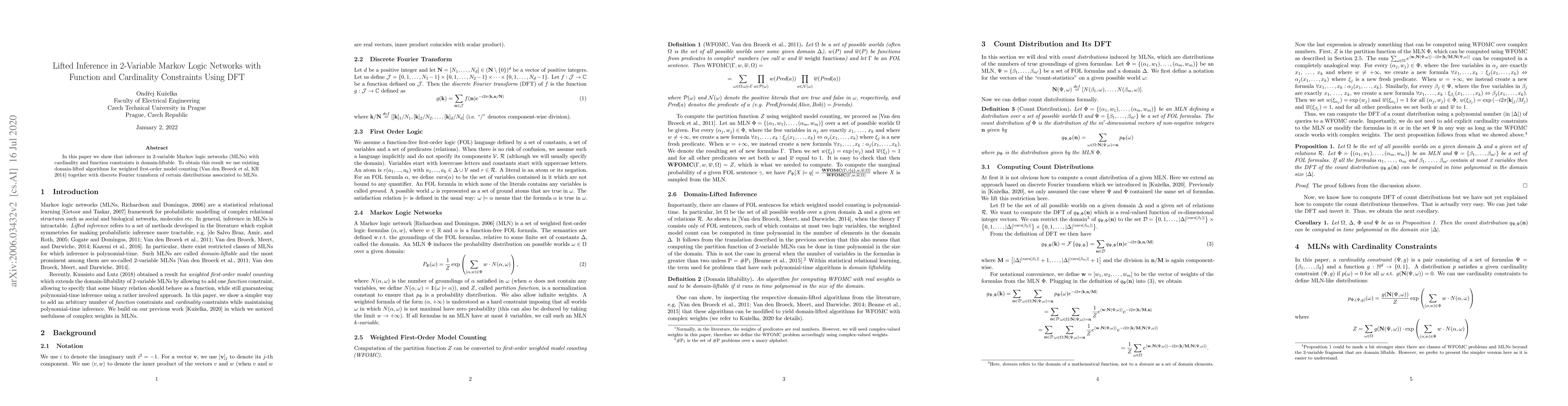 This paper demonstrates that inference in 2-variable Markov logic networks with cardinality and function constraints can be lifted to a higher domain. It achieves this by combining domain-lifted algorithms for weighted first-order model counting with the discrete Fourier transform of associated distributions.