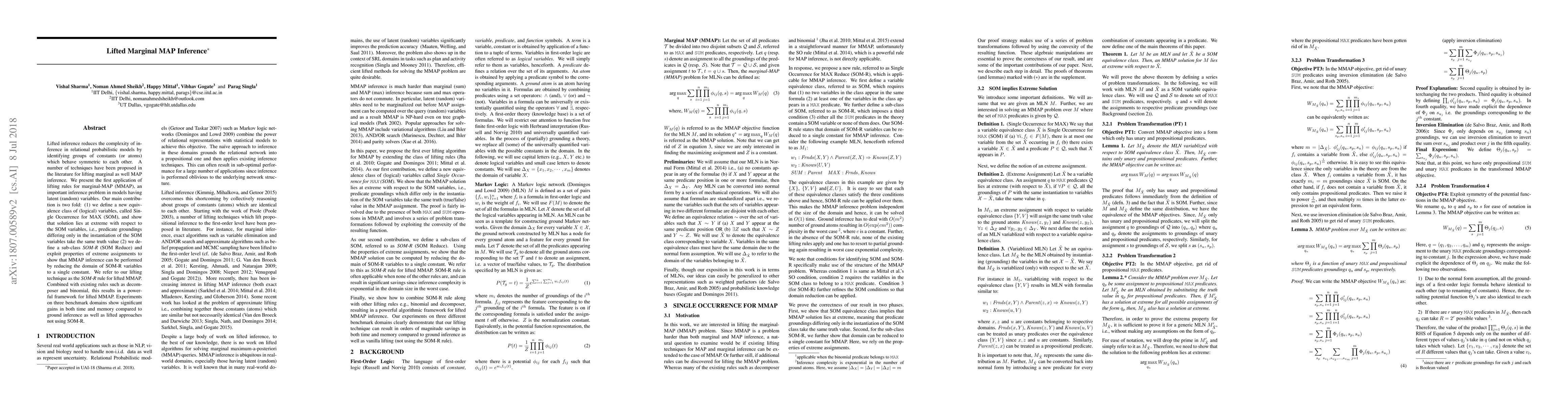 Lifted inference reduces the complexity of inference in relational probabilistic models by identifying groups of constants (or atoms) which behave symmetric to each other. A number of techniques have been proposed in the literature for lifting marginal as well MAP inference. We present the first application of lifting rules for marginal-MAP (MMAP), an important inference problem in models having latent (random) variables. Our main contribution is two fold: (1) we define a new equivalence class of (logical) variables, called Single Occurrence for MAX (SOM), and show that solution lies at extreme with respect to the SOM variables, i.e., predicate groundings differing only in the instantiation of the SOM variables take the same truth value (2) we define a sub-class {\em SOM-R} (SOM Reduce) and exploit properties of extreme assignments to show that MMAP inference can be performed by reducing the domain of SOM-R variables to a single constant.We refer to our lifting technique as the {\em SOM-R} rule for lifted MMAP. Combined with existing rules such as decomposer and binomial, this results in a powerful framework for lifted MMAP. Experiments on three benchmark domains show significant gains in both time and memory compared to ground inference as well as lifted approaches not using SOM-R.