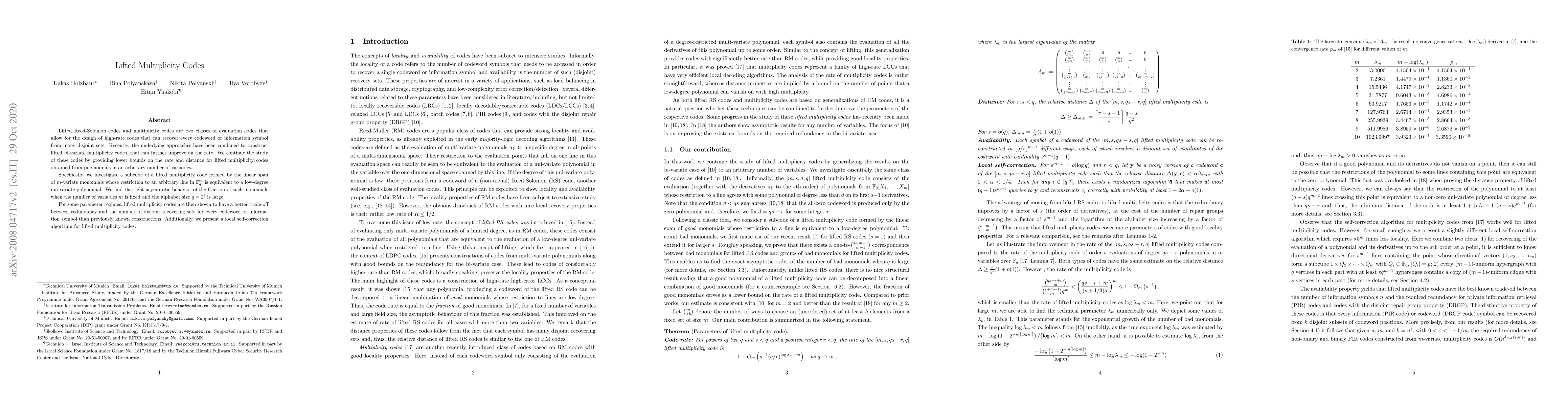 Lifted Reed-Solomon codes and multiplicity codes are two classes of evaluation codes that allow for the design of high-rate codes that can recover every codeword or information symbol from many disjoint sets. Recently, the underlying approaches have been combined to construct lifted bi-variate multiplicity codes, that can further improve on the rate. We continue the study of these codes by providing lower bounds on the rate and distance for lifted multiplicity codes obtained from polynomials in an arbitrary number of variables. Specifically, we investigate a subcode of a lifted multiplicity code formed by the linear span of $m$-variate monomials whose restriction to an arbitrary line in $\mathbb{F}_q^m$ is equivalent to a low-degree uni-variate polynomial. We find the tight asymptotic behavior of the fraction of such monomials when the number of variables $m$ is fixed and the alphabet size $q=2^\ell$ is large. For some parameter regimes, lifted multiplicity codes are then shown to have a better trade-off between redundancy and the number of disjoint recovering sets for every codeword or information symbol than previously known constructions. Additionally, we present a local self-correction algorithm for lifted multiplicity codes.