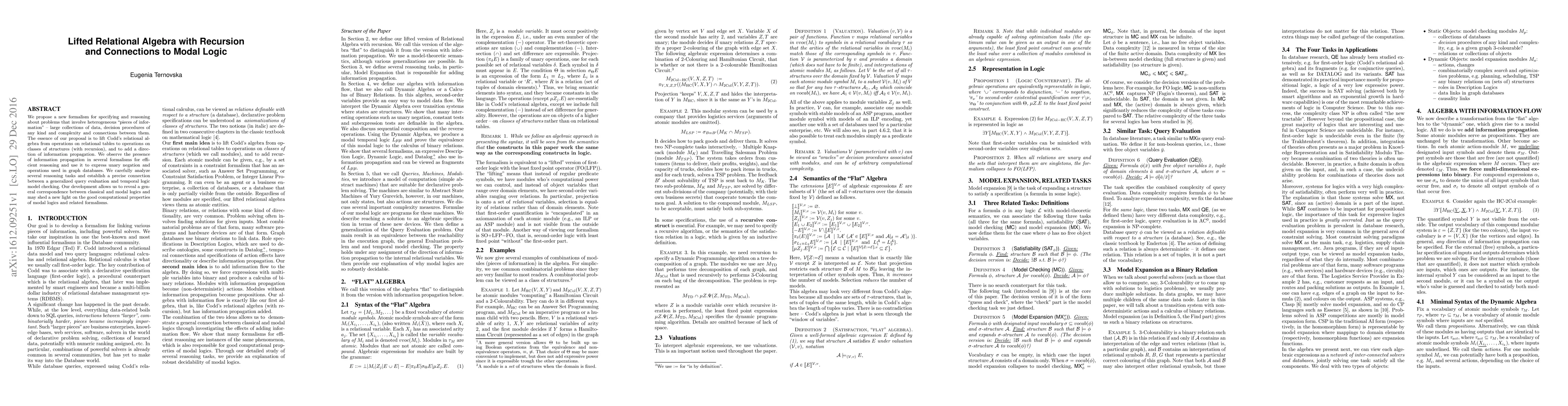 We propose a new formalism for specifying and reasoning about problems that involve heterogeneous "pieces of information" -- large collections of data, decision procedures of any kind and complexity and connections between them. The essence of our proposal is to lift Codd's relational algebra from operations on relational tables to operations on classes of structures (with recursion), and to add a direction of information propagation. We observe the presence of information propagation in several formalisms for efficient reasoning and use it to express unary negation and operations used in graph databases. We carefully analyze several reasoning tasks and establish a precise connection between a generalized query evaluation and temporal logic model checking. Our development allows us to reveal a general correspondence between classical and modal logics and may shed a new light on the good computational properties of modal logics and related formalisms.