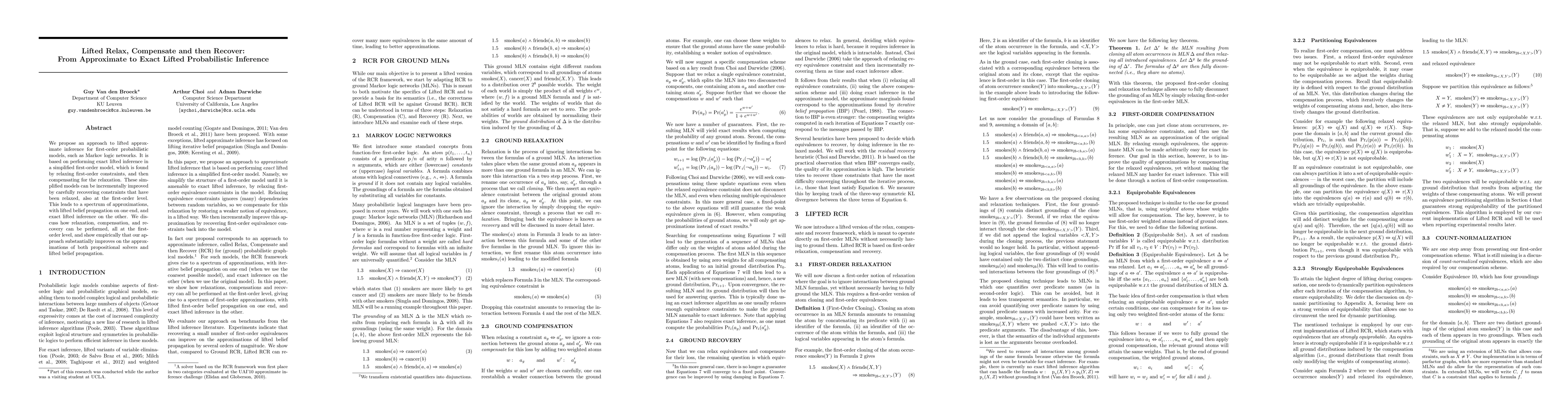 This paper proposes a method for lifted approximate inference in first-order probabilistic models, transitioning from approximate to exact inference by relaxing constraints, compensating for the relaxation, and incrementally recovering the constraints. The approach shows significant improvements over both propositional solvers and lifted belief propagation.