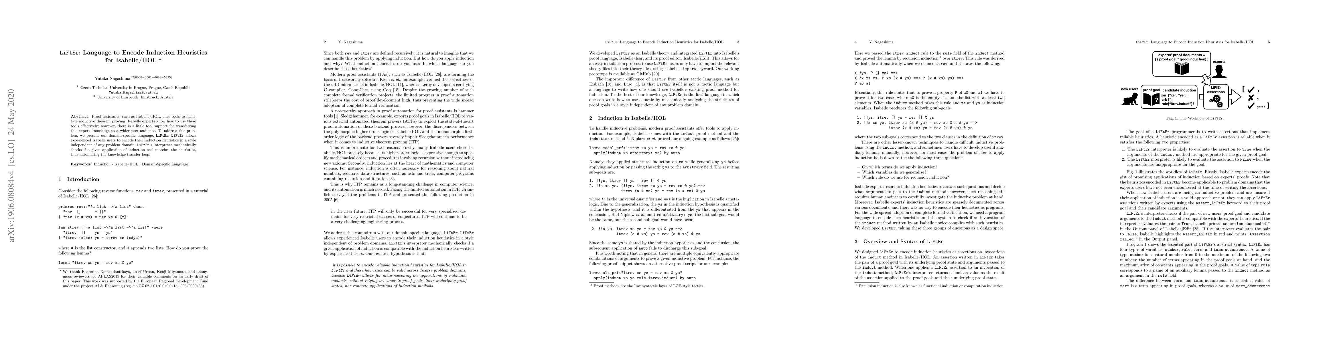 LiFtEr is a domain-specific language designed to encode induction heuristics for Isabelle/HOL, facilitating the transfer of expert knowledge to a broader user base. It automates the verification of induction tool applications against encoded heuristics, thereby enhancing the usability of proof assistants.