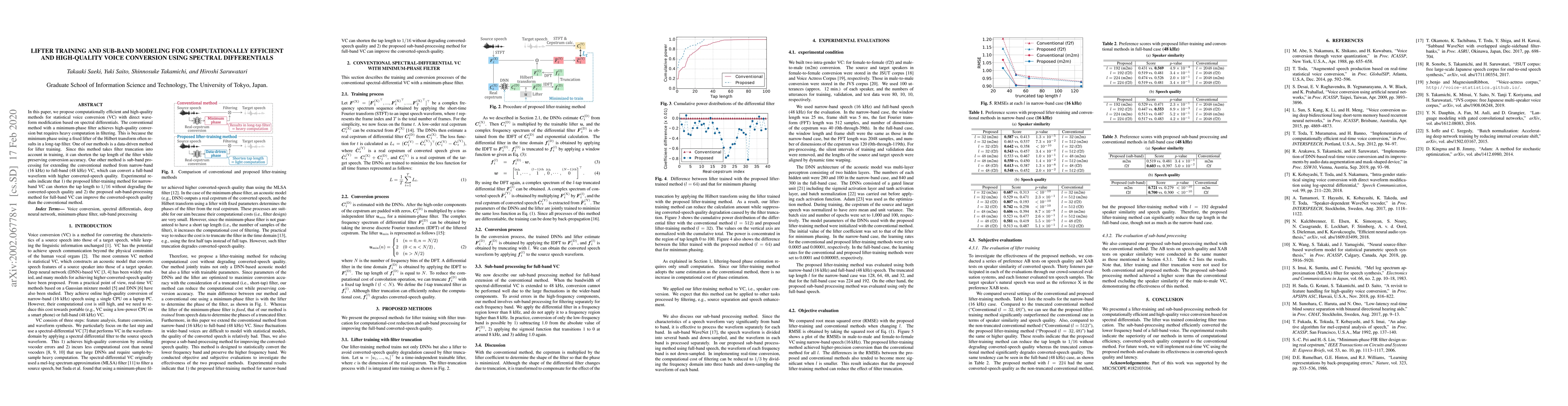 This paper proposes efficient methods for high-quality voice conversion using spectral differentials, including a data-driven lifter training method that shortens filter length without sacrificing quality, and a sub-band processing technique for better full-band conversion results. Experimental results show significant improvements in both efficiency and quality.
