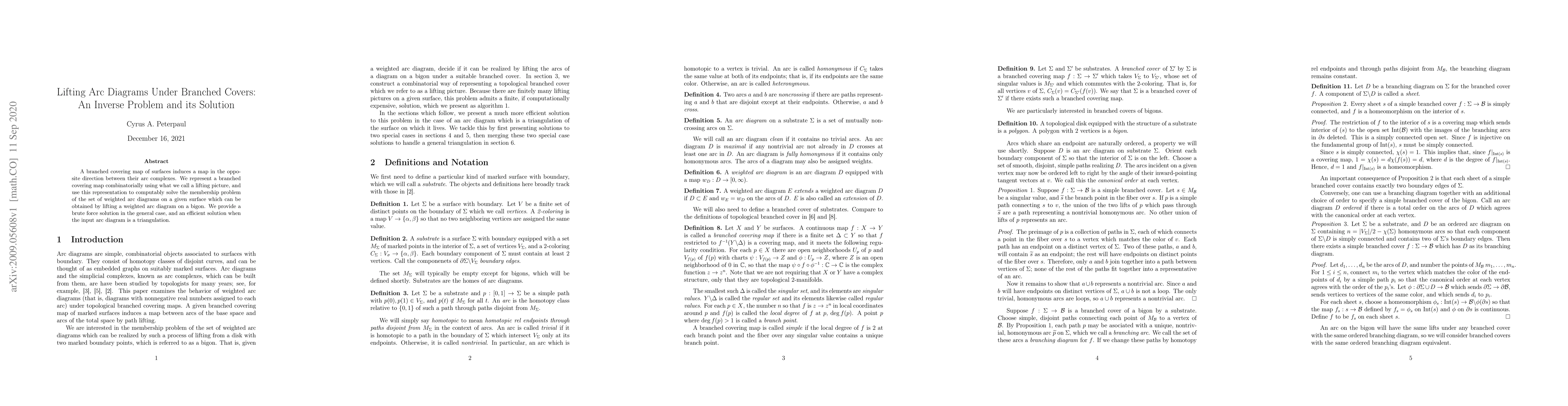 A branched covering map of surfaces induces a map in the opposite direction between their arc complexes. We represent a branched covering map combinatorially using what we call a lifting picture, and use this representation to computably solve the membership problem of the set of weighted arc diagrams on a given surface which can be obtained by lifting a weighted arc diagram on a bigon. We provide a brute force solution in the general case, and an efficient solution when the input arc diagram is a triangulation.