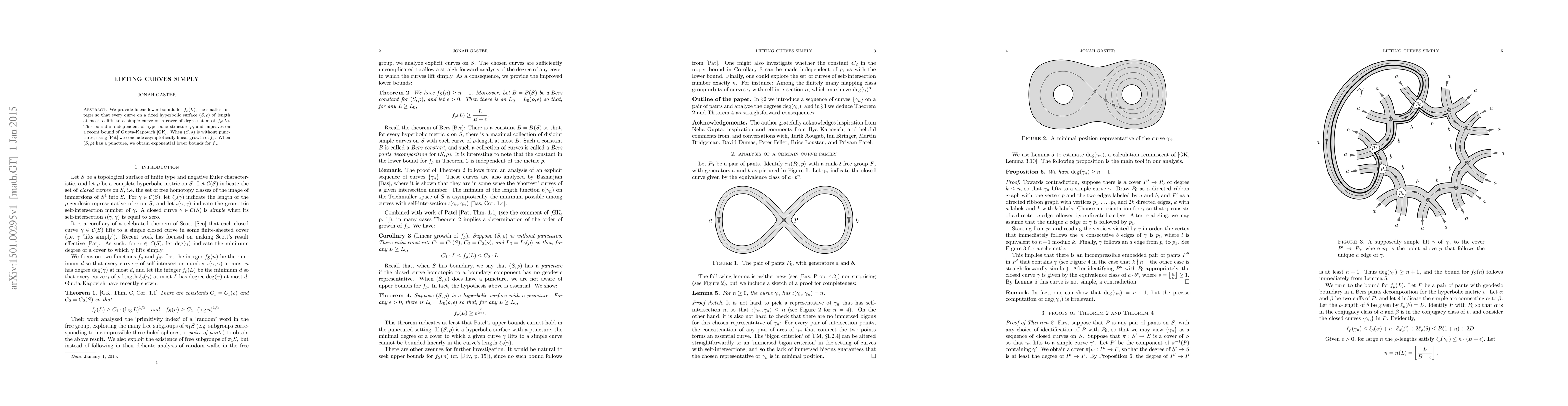 We provide linear lower bounds for $f_\rho(L)$, the smallest integer so that every curve on a fixed hyperbolic surface $(S,\rho)$ of length at most $L$ lifts to a simple curve on a cover of degree at most $f_\rho(L)$. This bound is independent of hyperbolic structure $\rho$, and improves on a recent bound of Gupta-Kapovich. When $(S,\rho)$ is without punctures, using work of Patel we conclude asymptotically linear growth of $f_\rho$. When $(S,\rho)$ has a puncture, we obtain exponential lower bounds for $f_\rho$.