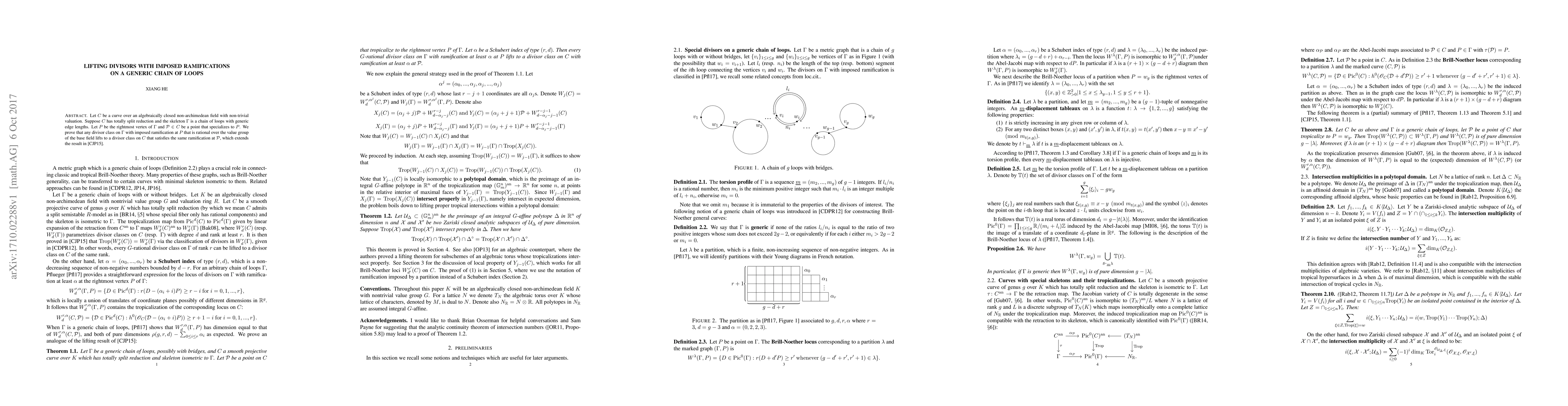 Proves that if a curve has totally split reduction and the corresponding skeleton (as a metric graph) is a chain of loops with generic edge lengths, then every divisor on the graph with imposed ramification at the rightmost vertex $p$ of the skeleton lifts to a divisor class on the curve with the same ramification at some point $P$ that retracts to $p$, extending the work of Cartwright-Jensen-Payne. Gives a positive answer to lifting proper tropical intersections within a polytopal domain in an analytic torus.