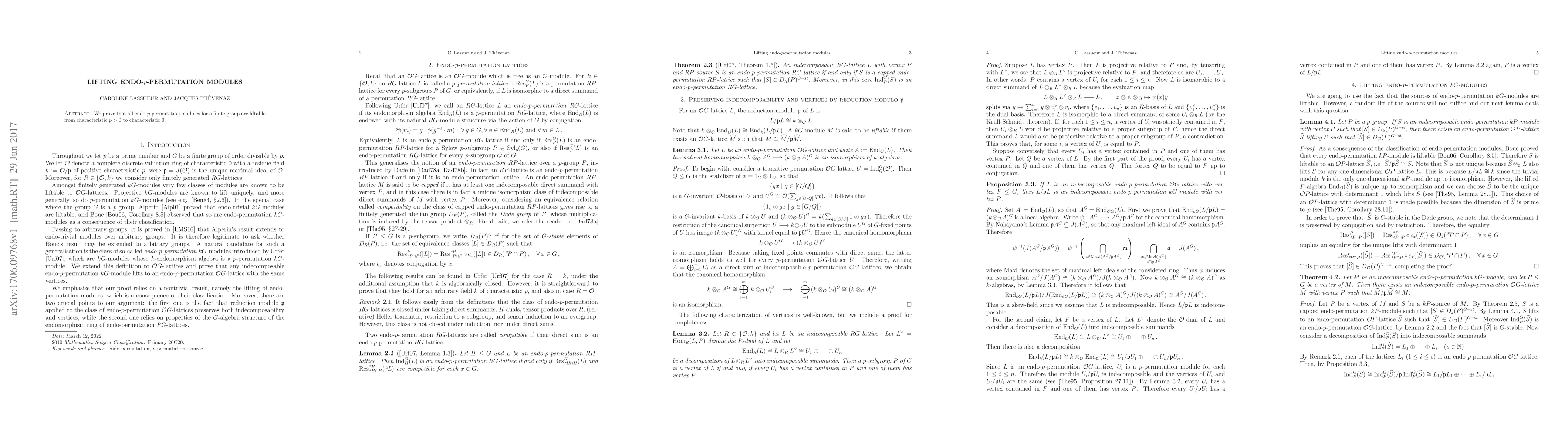 Summary: This paper proves that endo-$p$-permutation modules for finite groups can be lifted from characteristic $p$ to characteristic $0$, establishing their existence in characteristic $0$. This finding enhances the understanding of module theory in modular representation.