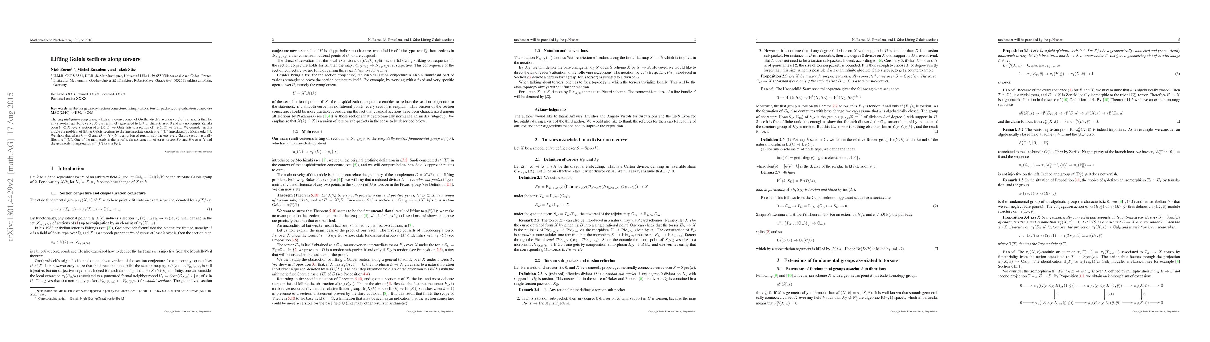 The cuspidalization conjecture, which is a consequence of Grothendieck's section conjecture, asserts that for any smooth hyperbolic curve $X$ over a finitely generated field $k$ of characteristic $0$ and any non empty Zariski open $U \subset X$, every section of $\pi _1 (X, \bar x) \to \mathrm{Gal}_k$ lifts to a section of $\pi _1 (U,\bar x) \to \mathrm{Gal}_k$. We consider in this article the problem of lifting Galois sections to the intermediate quotient $ \pi_1^{cc}(U)$ introduced by Mochizuki. We show that when $k = \mathbb Q$ and $D=X\setminus U$ is an union of torsion sub-packets every Galois section actually lifts to $ \pi_1^{cc}(U)$. One of the main tools in the proof is the construction of torus torsors $F_D$ and $E_D$ over $X$ and the geometric interpretation $ \pi_1^{cc}(U) \simeq \pi _1 (F_D)$.