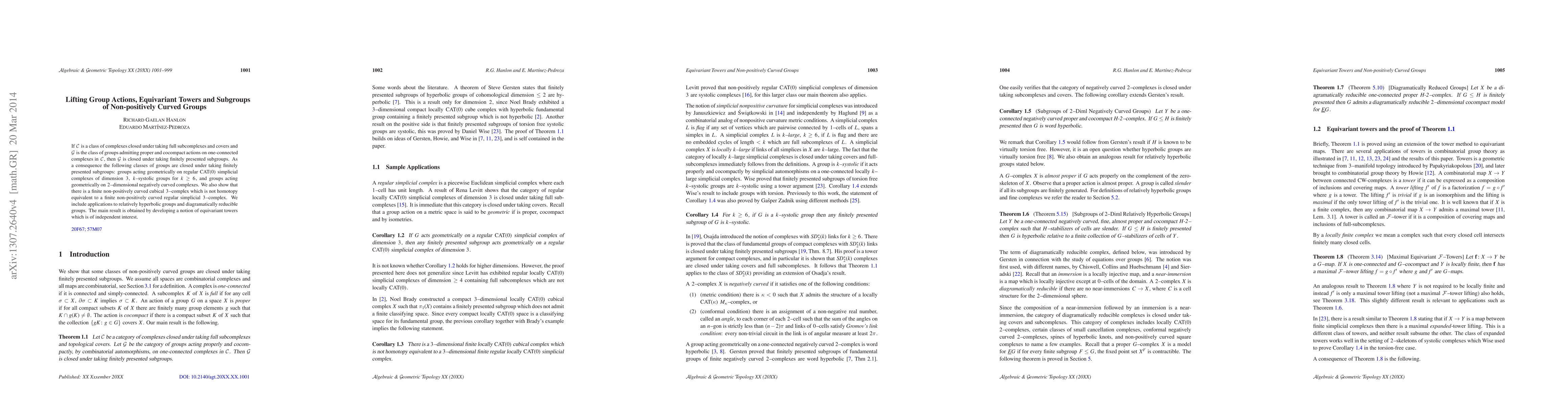 This paper demonstrates that certain classes of groups, including those acting on $CAT(0)$ complexes and $k$-systolic groups, are closed under taking finitely presented subgroups. It introduces the concept of equivariant towers to prove these results and also explores applications to relatively hyperbolic and diagramatically reducible groups.