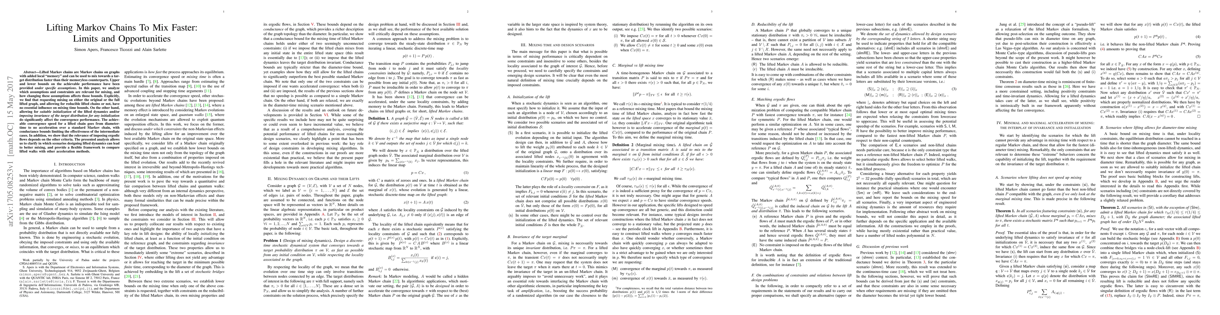 This paper investigates the conditions under which lifted Markov chains, which incorporate local memory, can accelerate mixing towards a target distribution. The analysis finds that constraints on graph structure and initialization significantly influence mixing time, while reducible chains and graph type do not. The study provides a framework to compare lifted dynamics to other acceleration techniques.